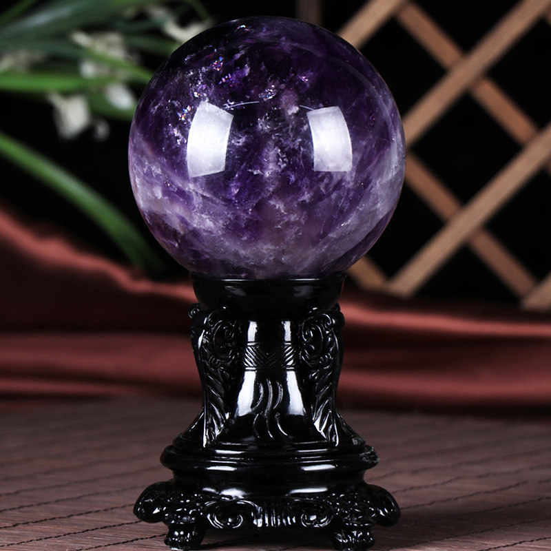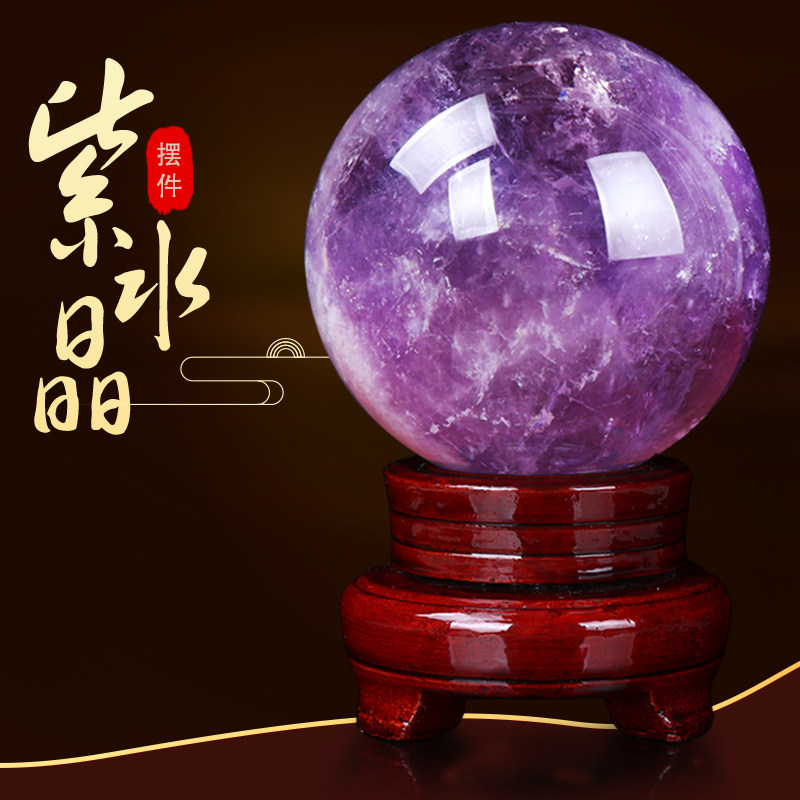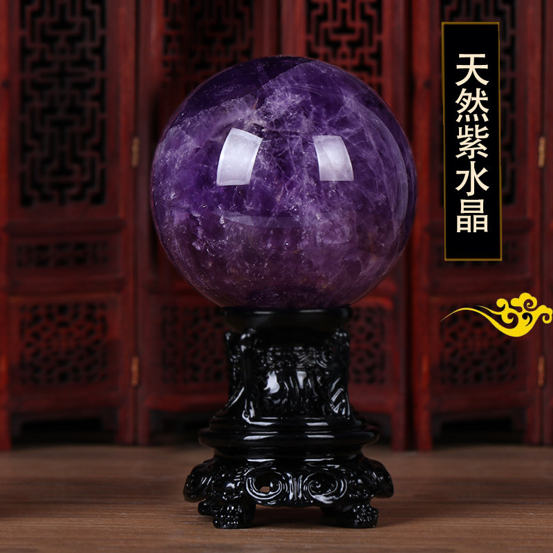 紫色水晶球摆件天然原石招财紫气东来客厅办公室装饰乔迁开业礼物