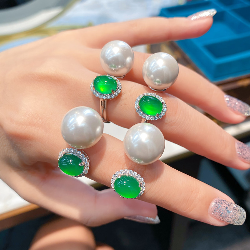 VISING珠宝开口贝珠戒指金色白色灰色贝壳珍珠S925银