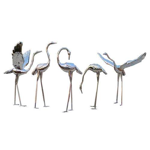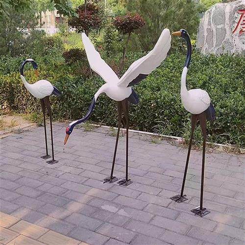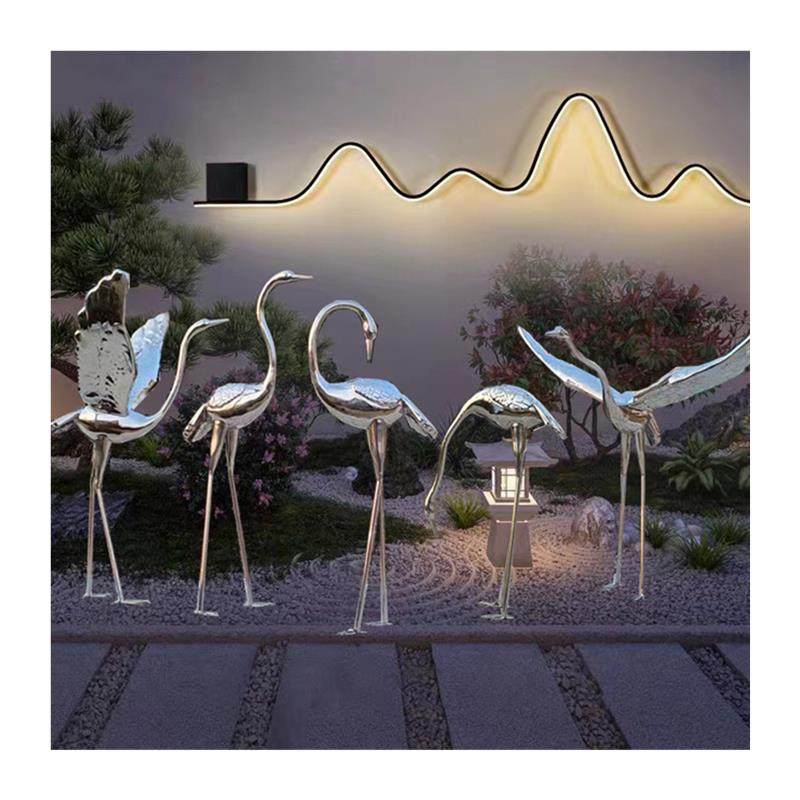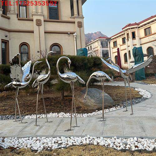 不锈钢仙鹤雕塑金属定制抽象公园白鹭小品白天鹅镜面摆件庭院水池