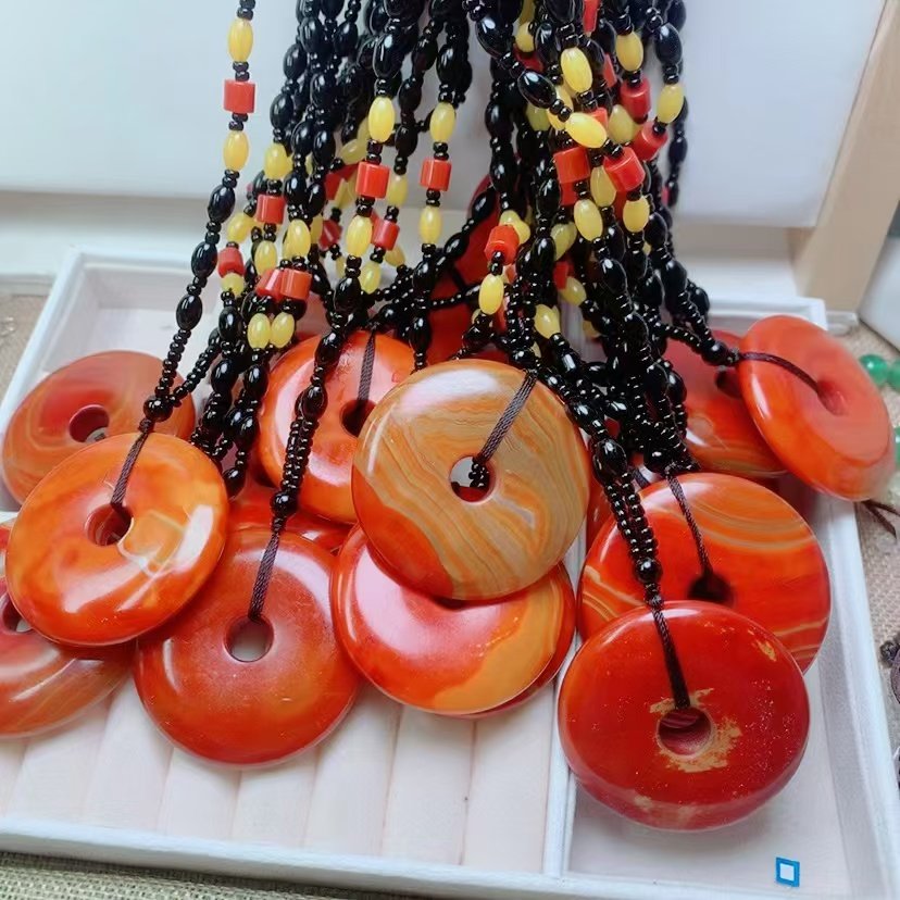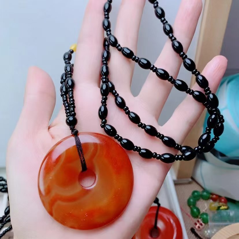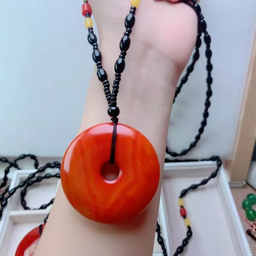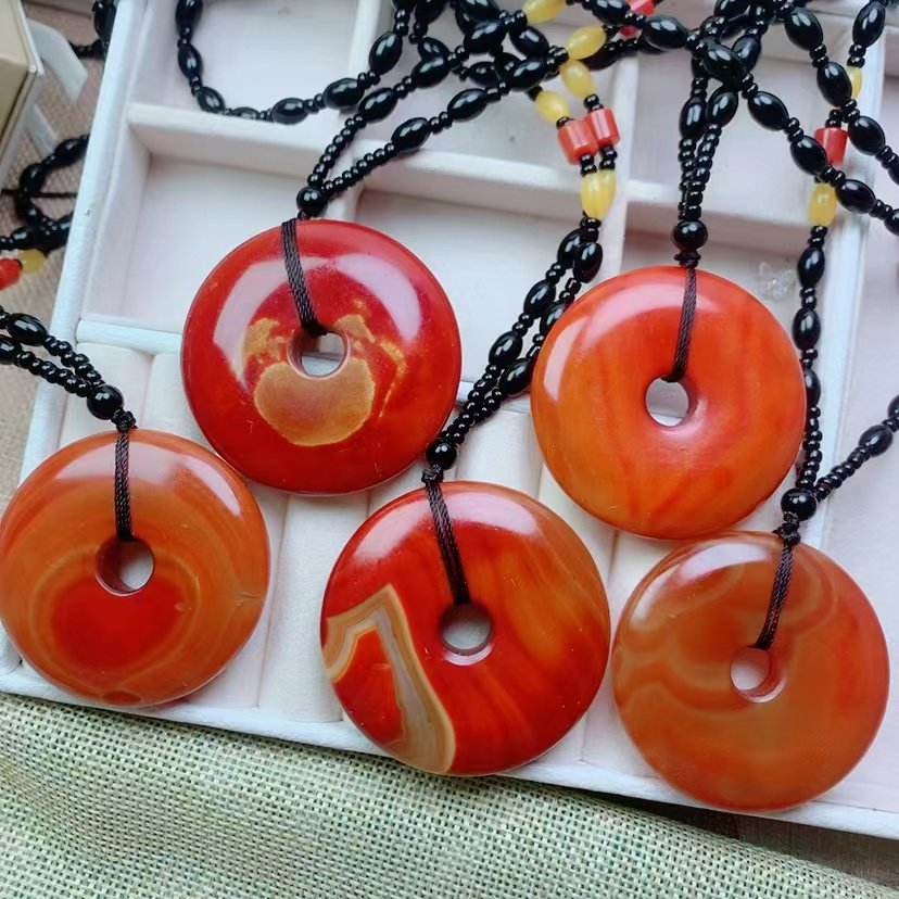 战国红色缠丝玛瑙玉髓平安扣吊坠男女款挂件本命年项链长款毛衣链