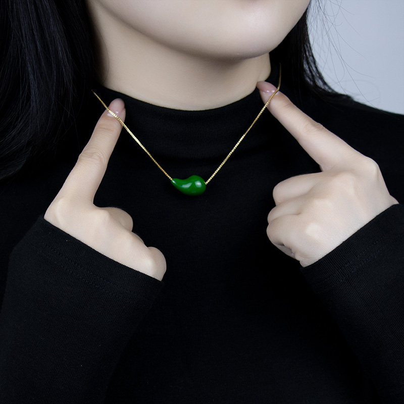leqiyuan珐琅项链女新款绿色葫芦易搭配轻奢小众时尚简约