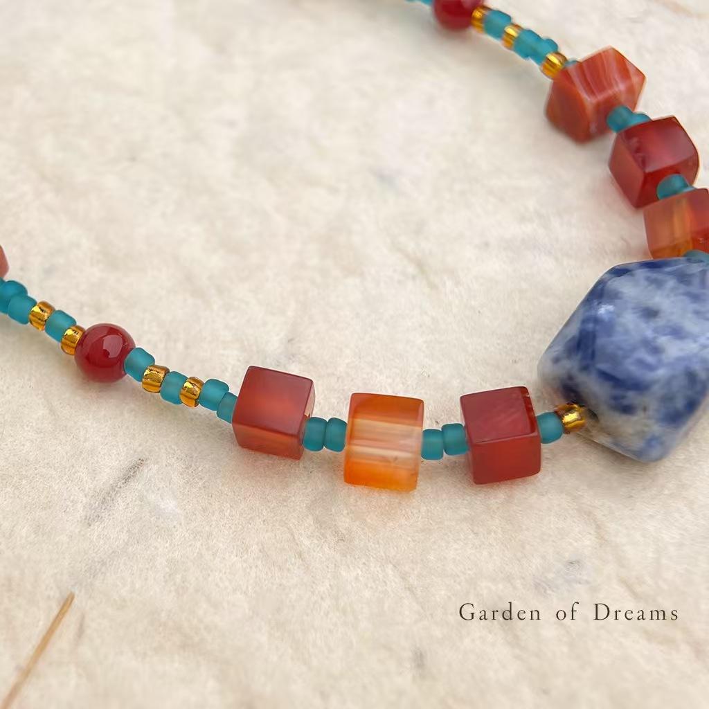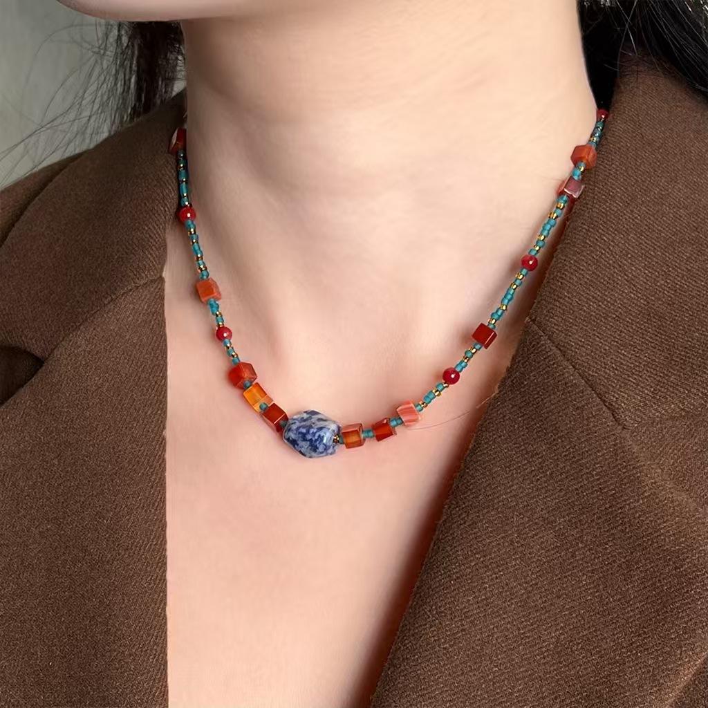 〖艺术油画〗丨原创手作天然红玛瑙撞色项链复古文艺封锁骨链项饰
