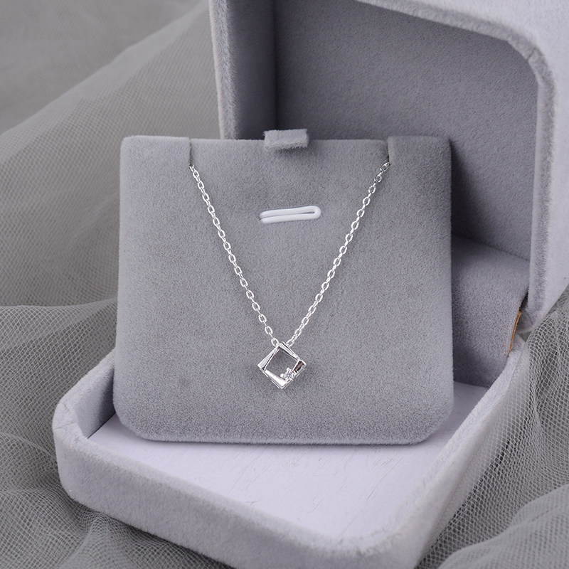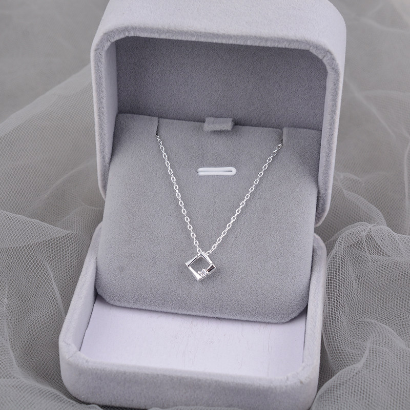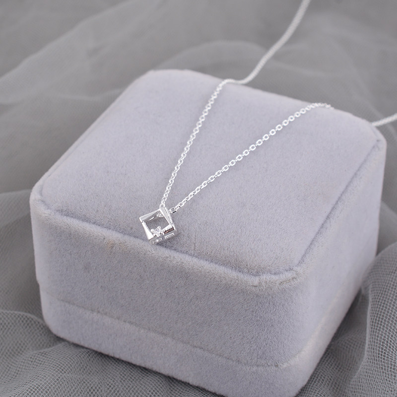 925纯银方块几何吊坠锁骨链女项链日常百搭新款轻奢高级礼物刻字