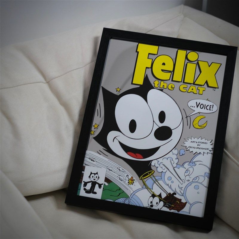 耐看的复古卡通菲力猫热气球镜面装饰画挂画家居摆件