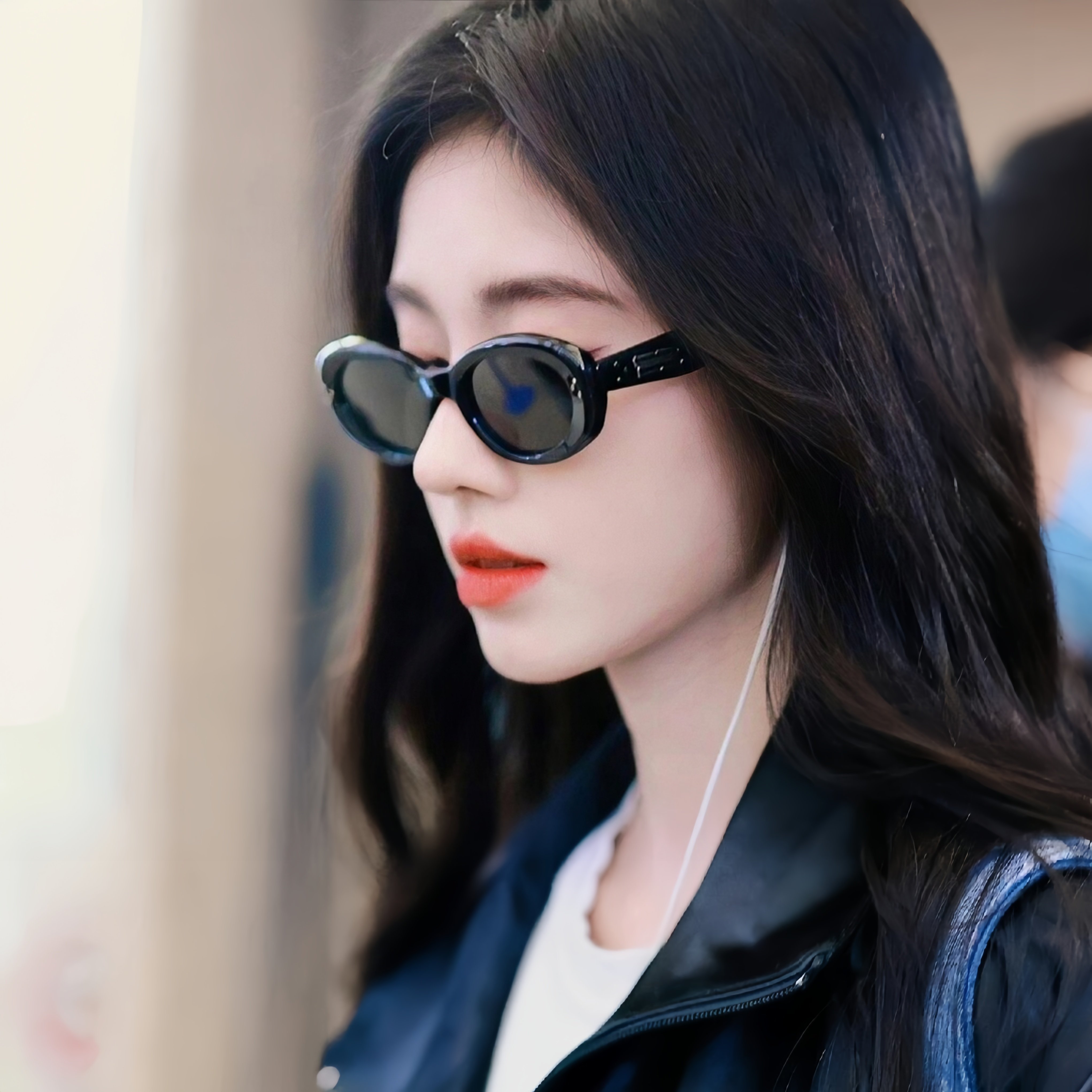 森蓝家韩版gm蓝色椭圆形框米钉墨镜小红书同款潮流网红太阳眼镜