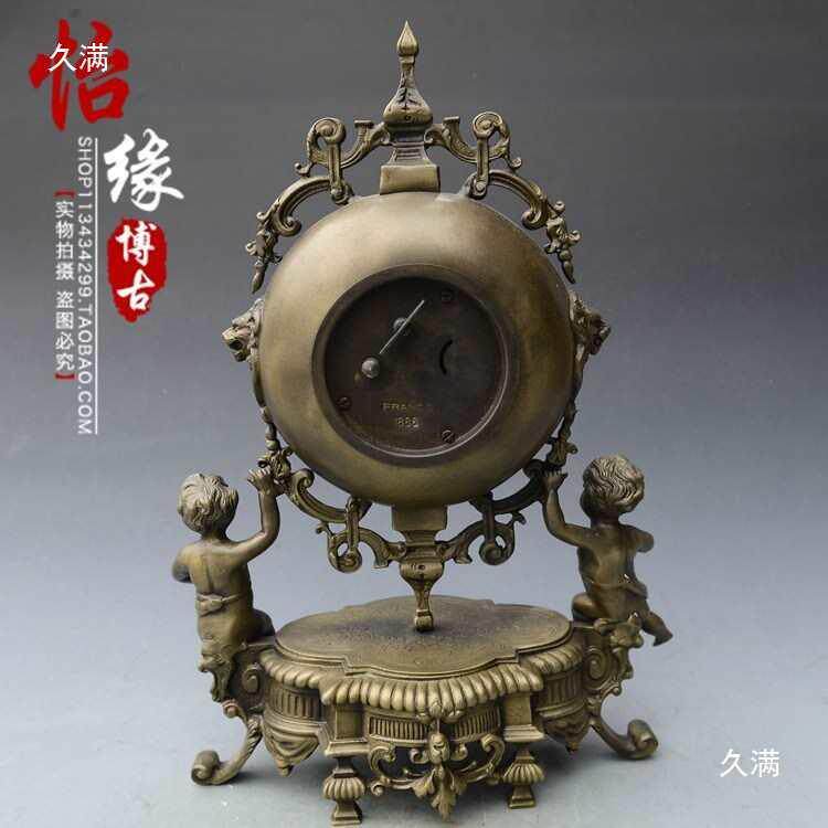 古玩古董杂项 回流黄小西洋钟 机械钟表欧侙复古摆件收藏