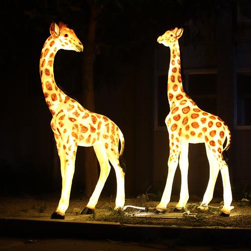 仿真长颈鹿玻璃钢雕塑户外大型发光假动物模型幼儿园装饰落地摆件