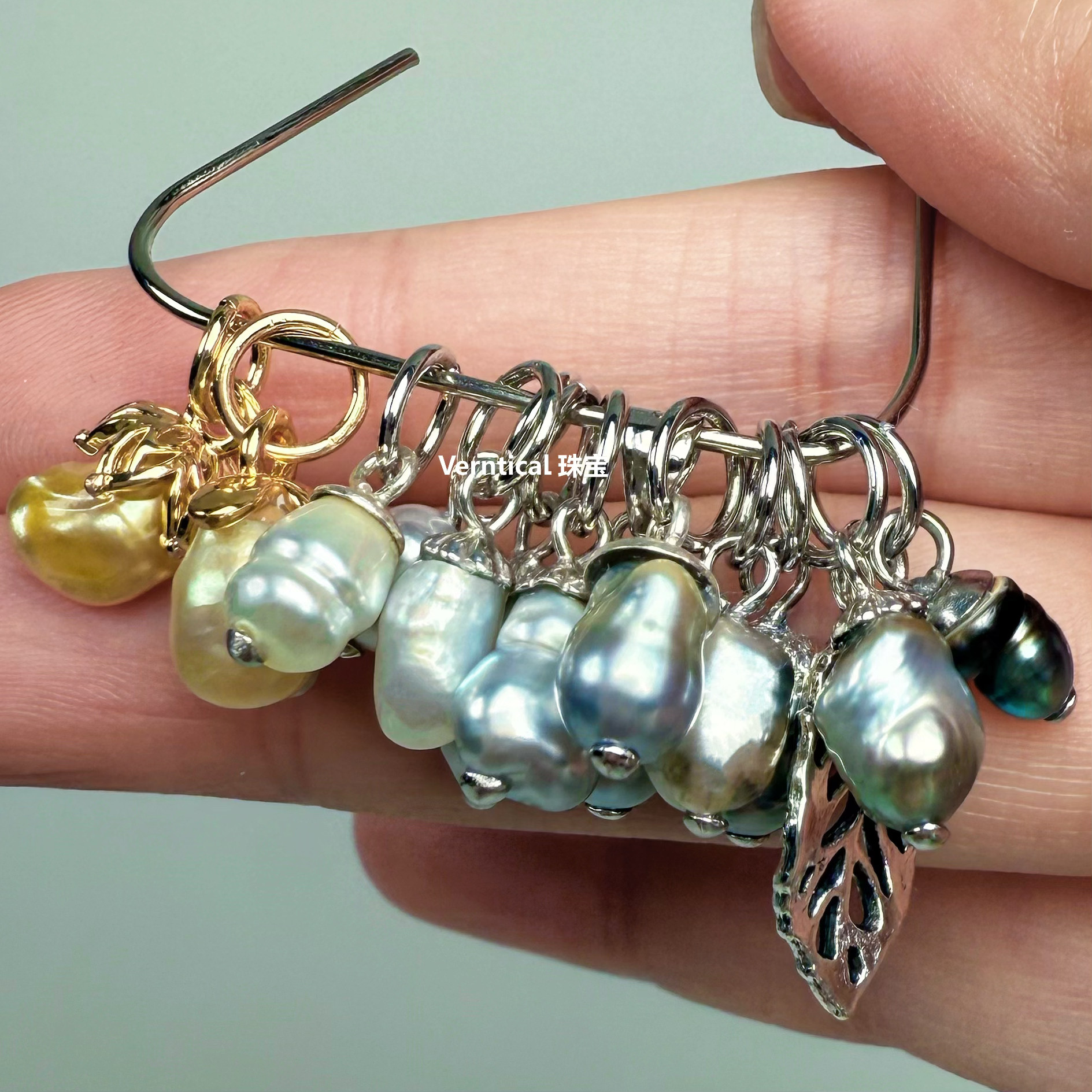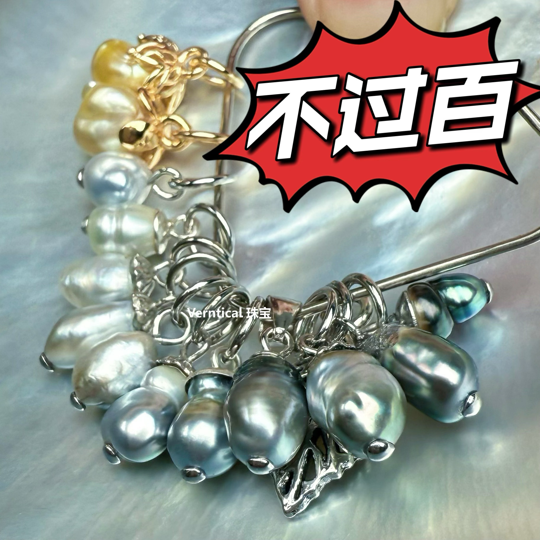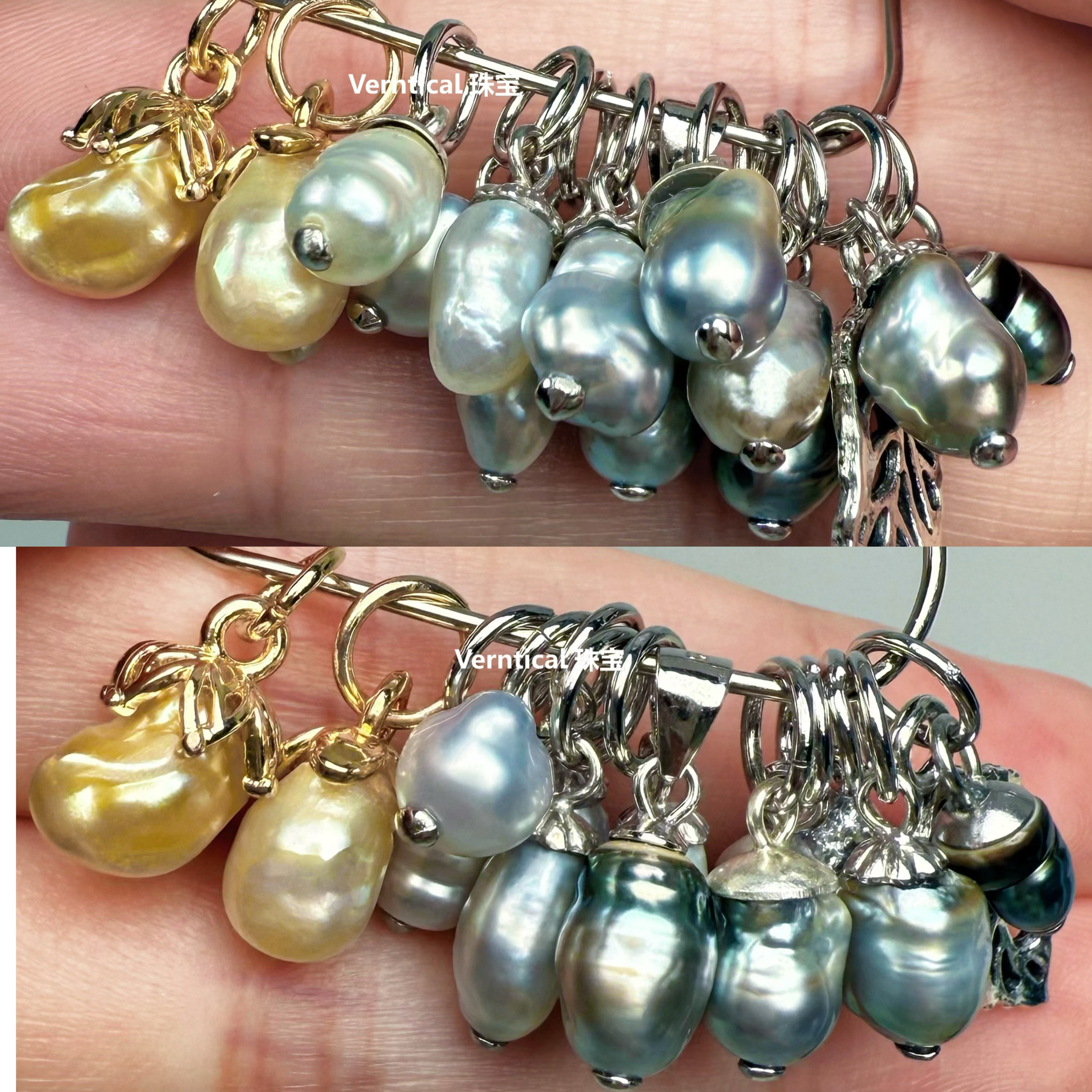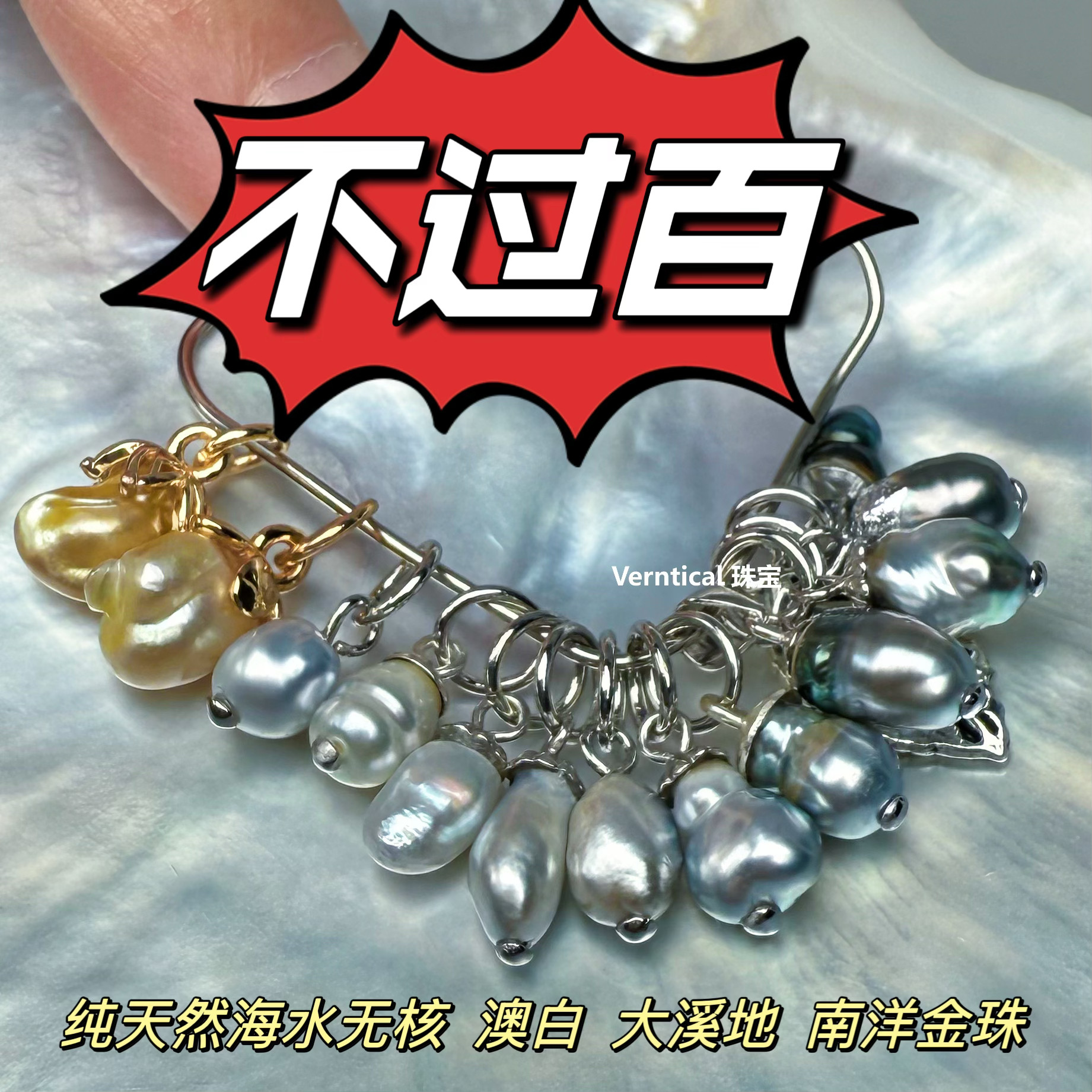 稀缺无核银蓝光澳白大溪地南洋金珠Keshi吊坠叠戴纯天然海水珍珠