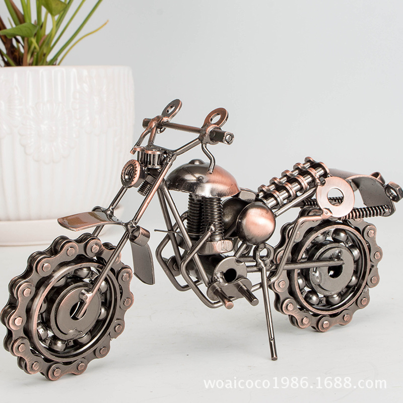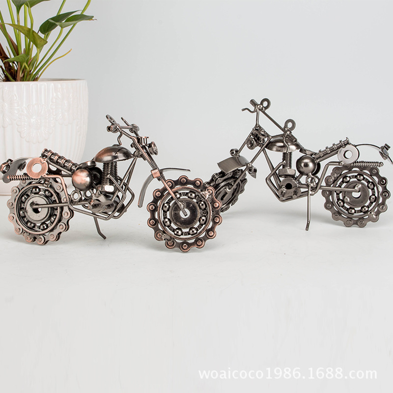 创意摆设客厅装饰橱窗摆件中号铁艺链条摩托车 创意工艺品摆件