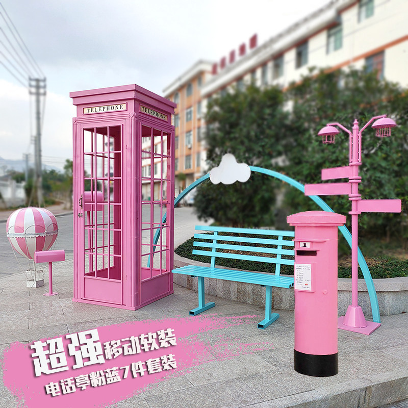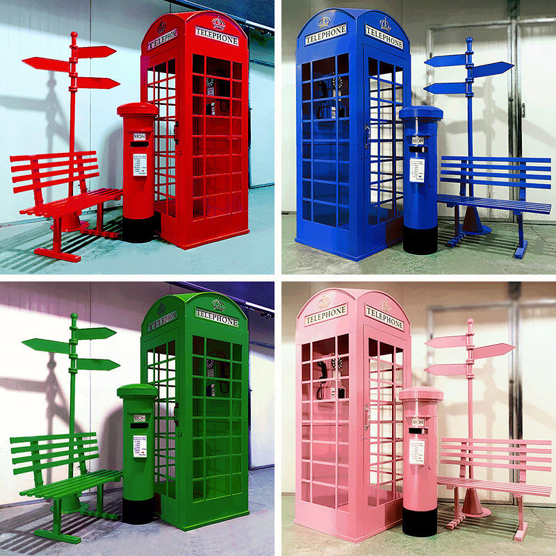 复古铁艺邮筒电话亭路标指示牌大型户外拍摄道具商场装饰落地摆件