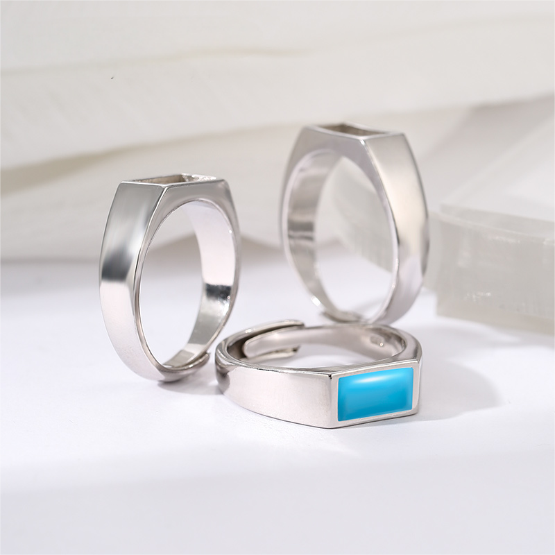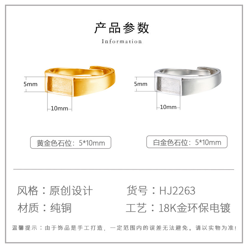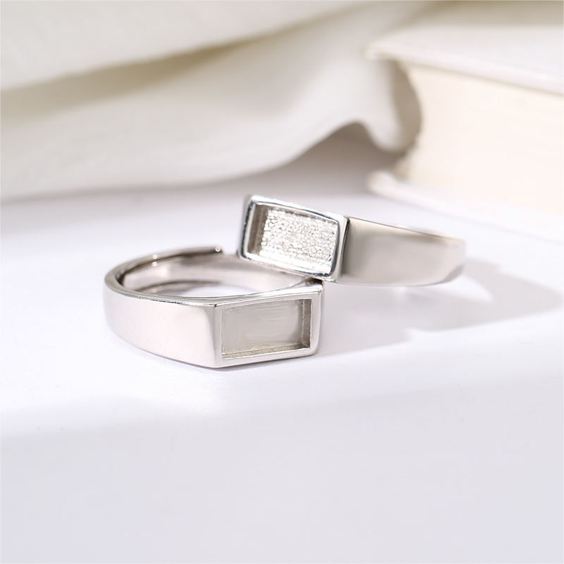 国潮光面马鞍戒指空托男女方形戒托空托蜜蜡翡翠绿松石戒托5*10mm