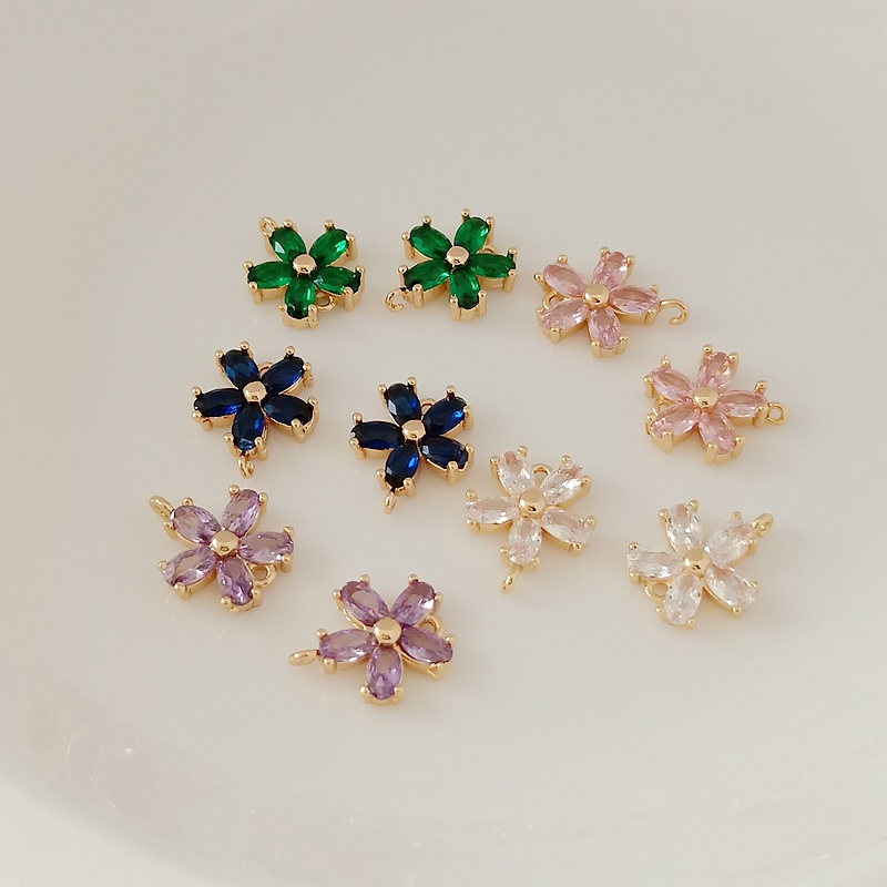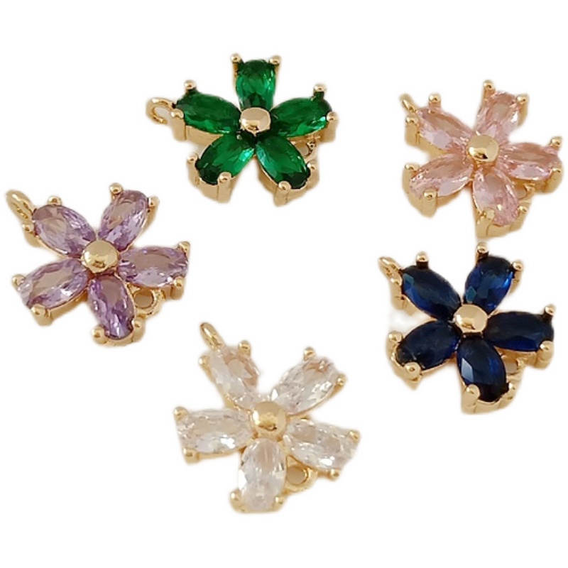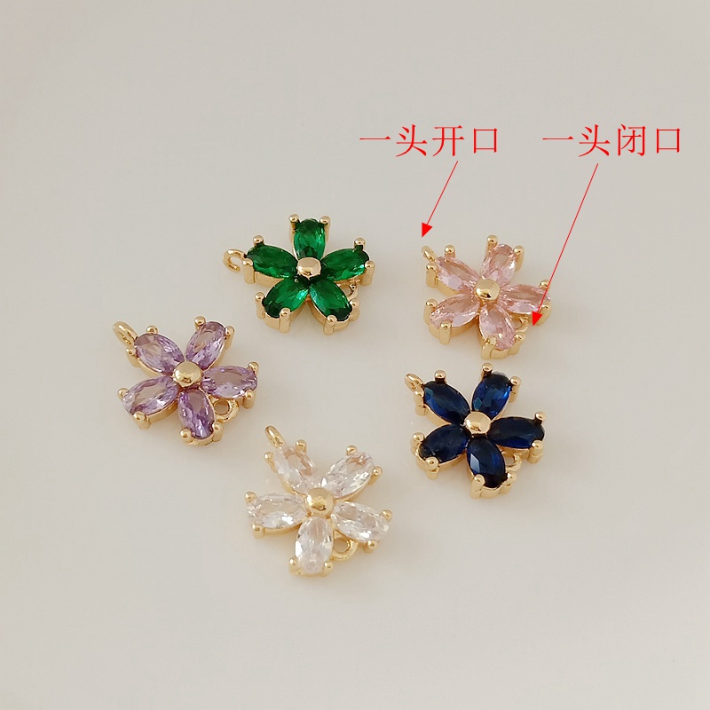 日韩保色配件14铜包金镶嵌锆石五叶花吊坠手链项链双吊环DIY饰品