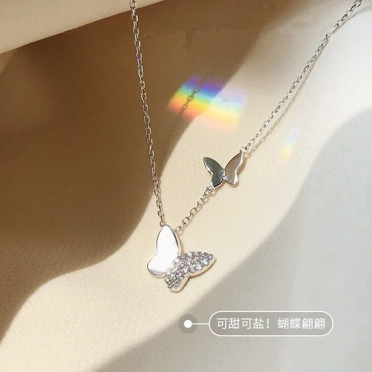 s925镀银蝴蝶项链女ins风简约锁骨链甜美森系小清新网红气质饰品