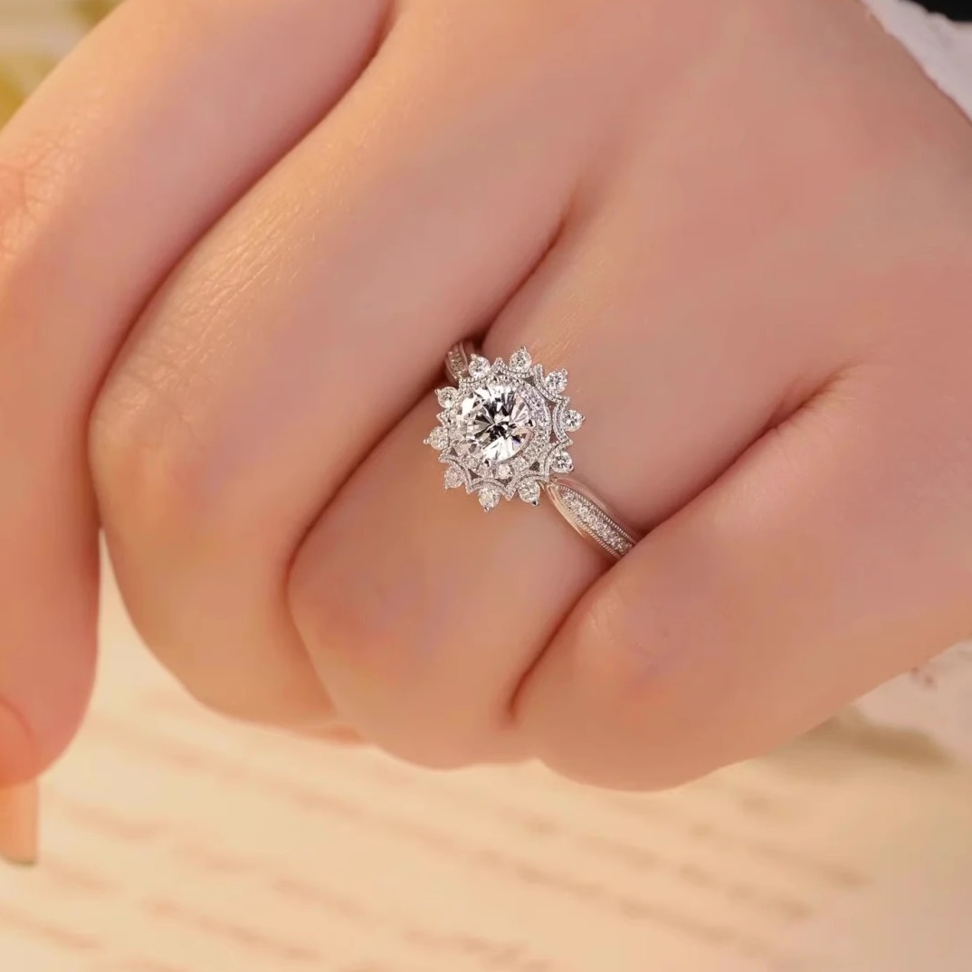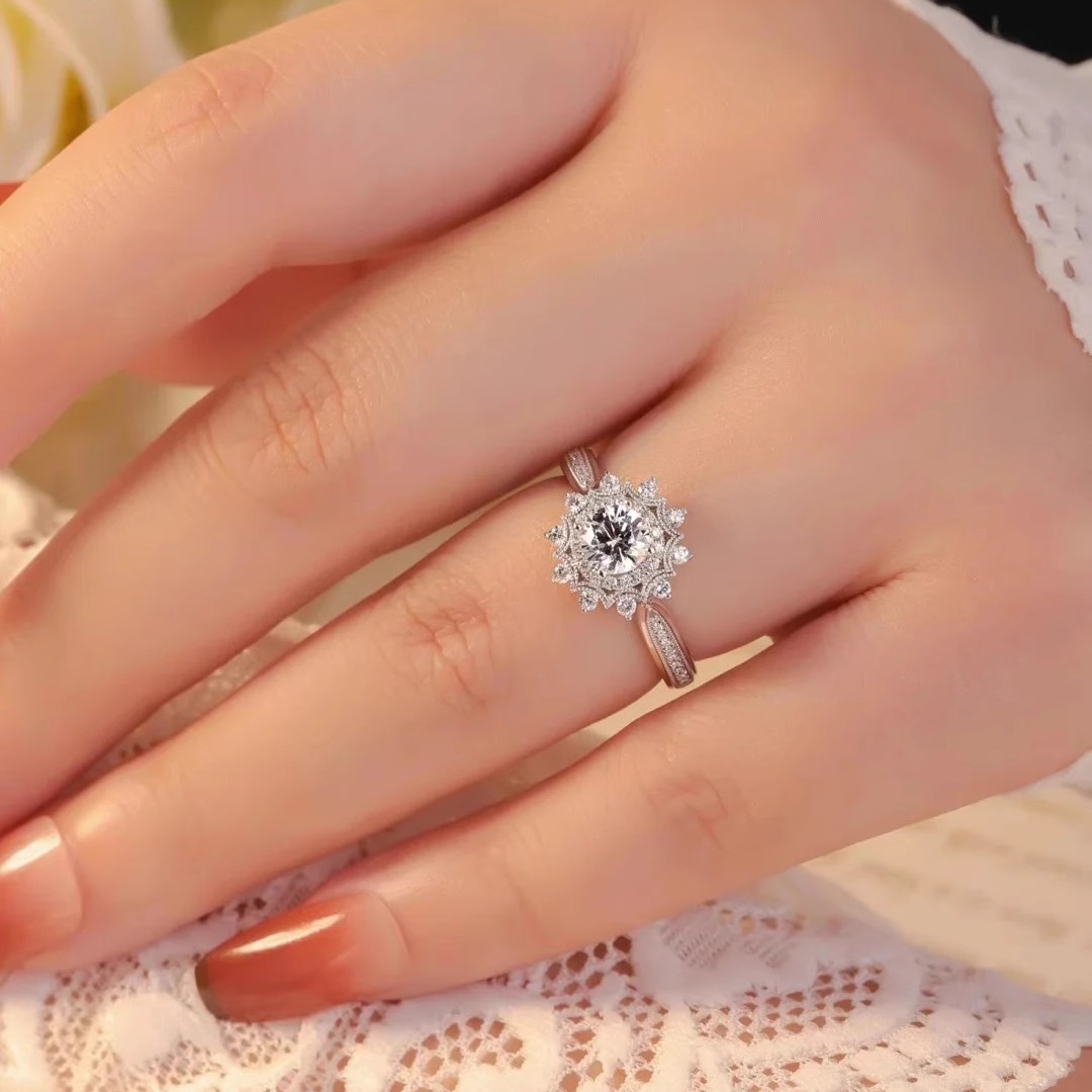 S925纯银莫桑石戒指【童话密镶花型】60分钻戒女款婚戒开口可选