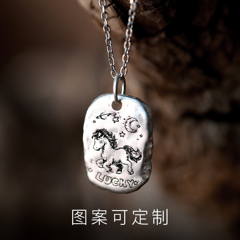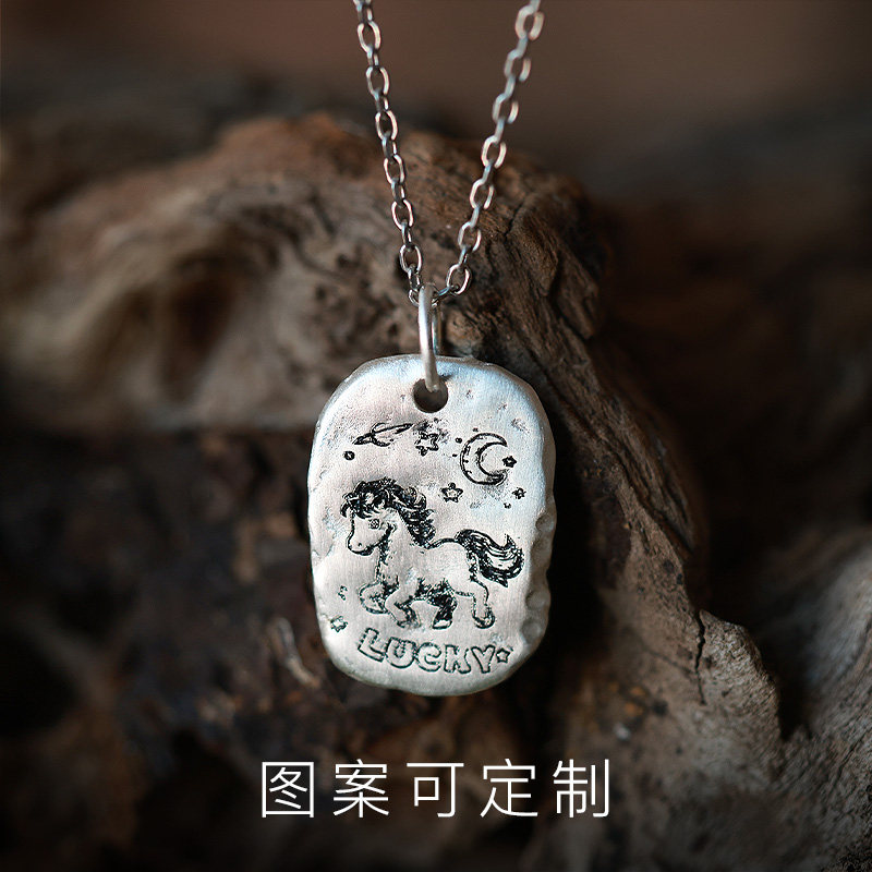 手工定制《以梦为马》999纯银男女项链 项链照片吊坠宠物字母刻字