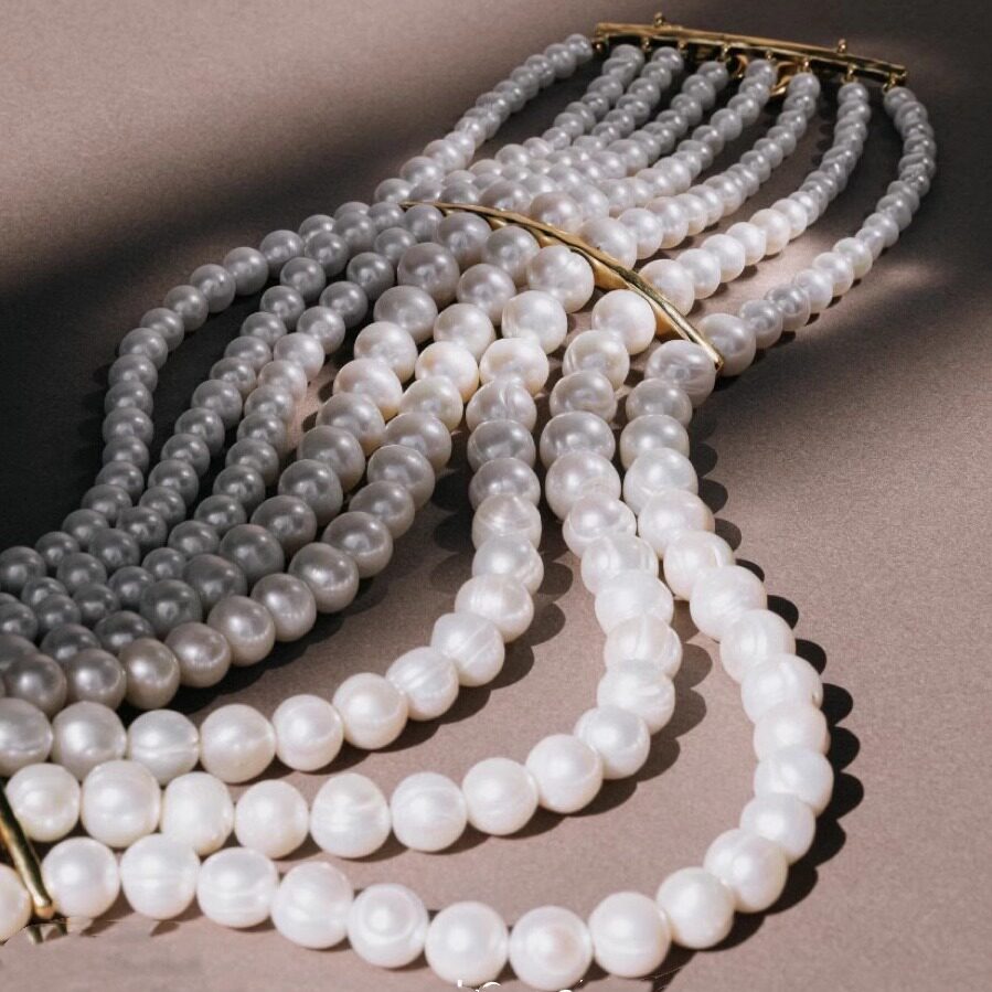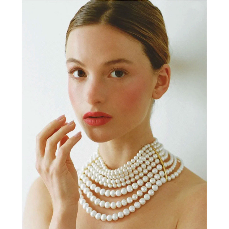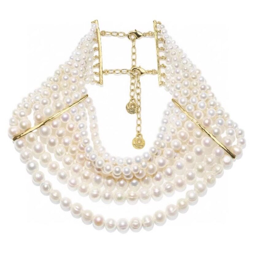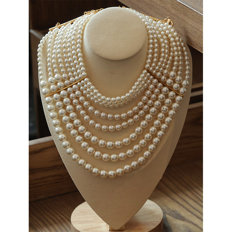 yuwelry欧美法式手工多层琉璃天然珍珠夸张气质项链ckher颈链礼服