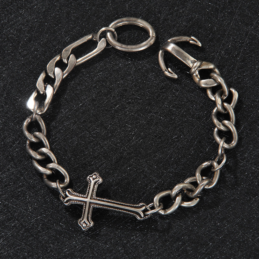 "福利手作Wm古巴十字ins小众设计男女潮情侣手链银精致高级感轻奢