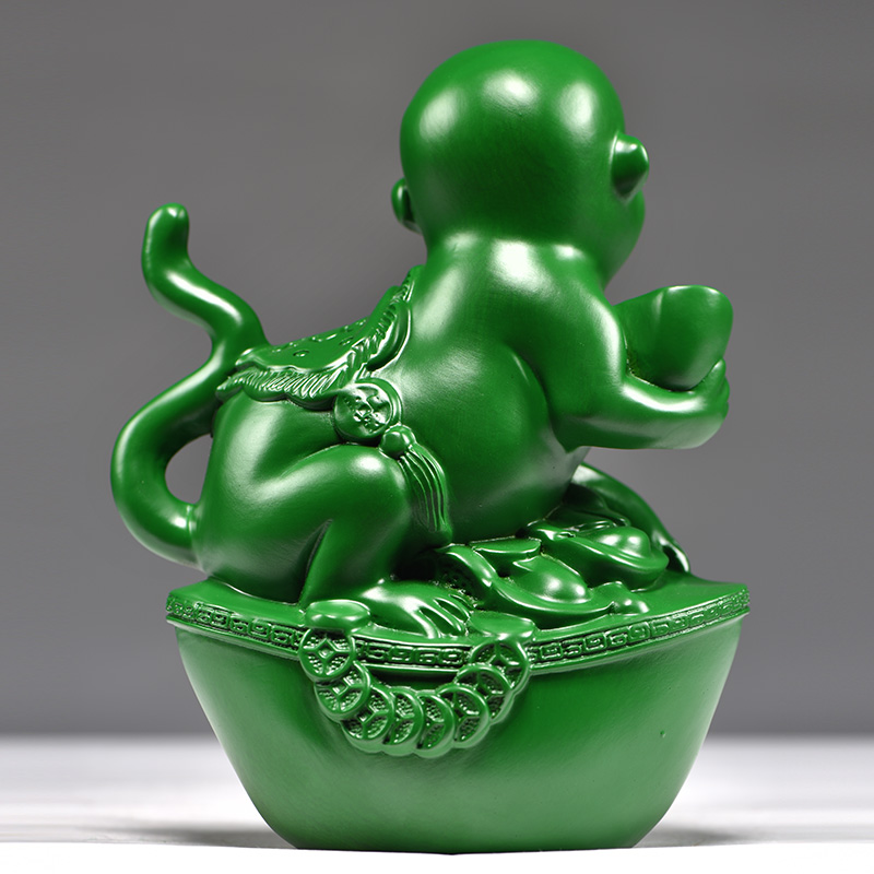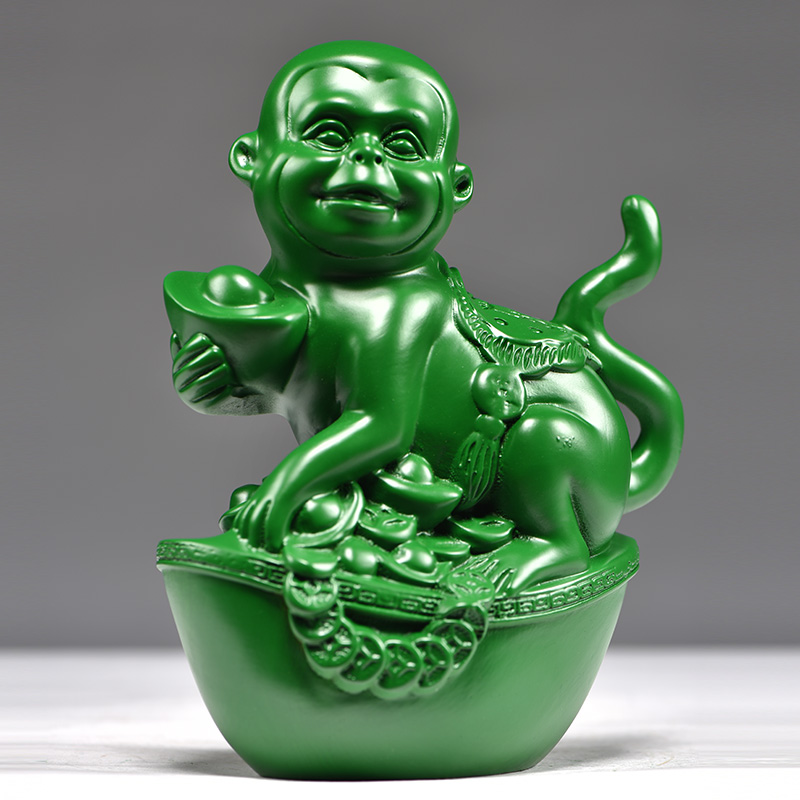 绿色木雕猴子摆件实木质雕刻生肖猴工艺品可爱家居客厅三合装饰品