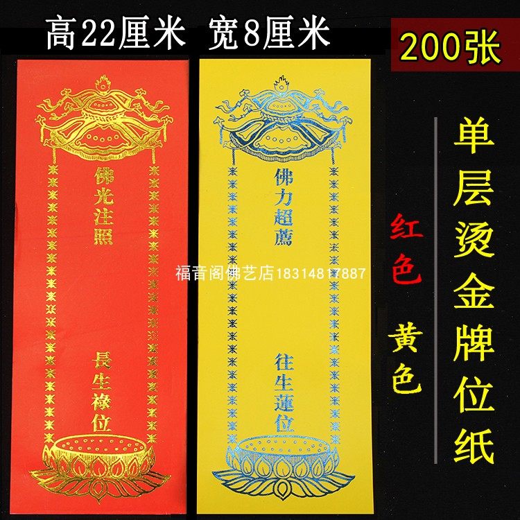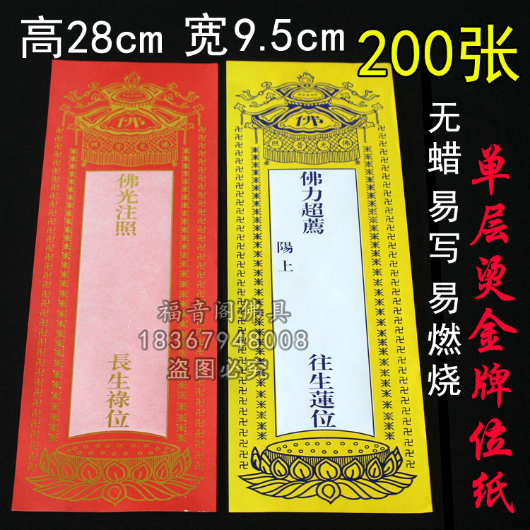 寺院大号单层纸牌位红色黄吉祥牌无蜡易写易然烫金牌位200张包邮