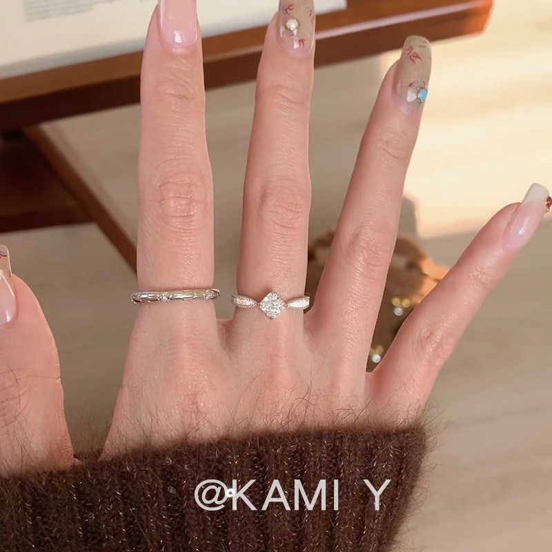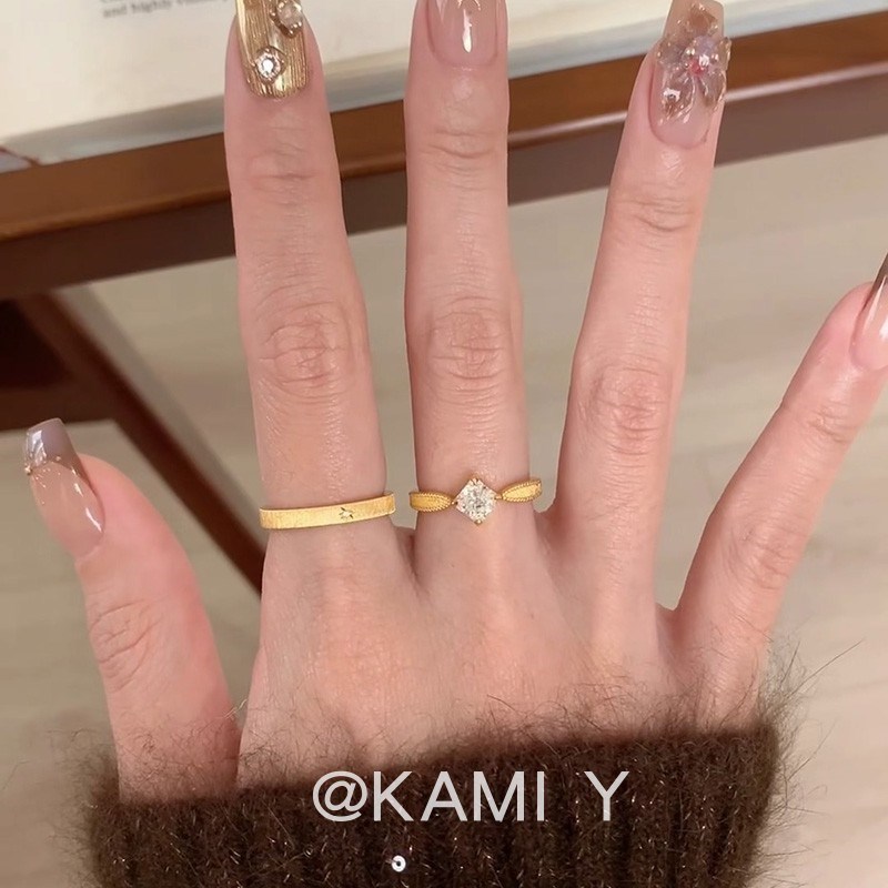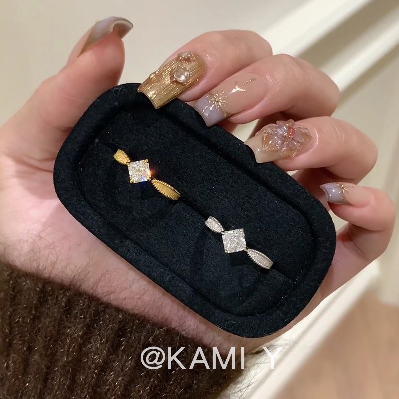 KAMI Y中古金色公主方糖锆石戒指女小众设计简约气质通勤开口指环