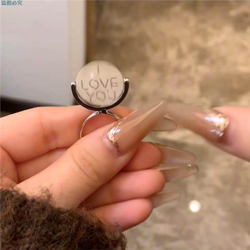 旋转圆盘戒指iloveyou创意表白惊喜指环小众设计对戒暗恋翻转戒指