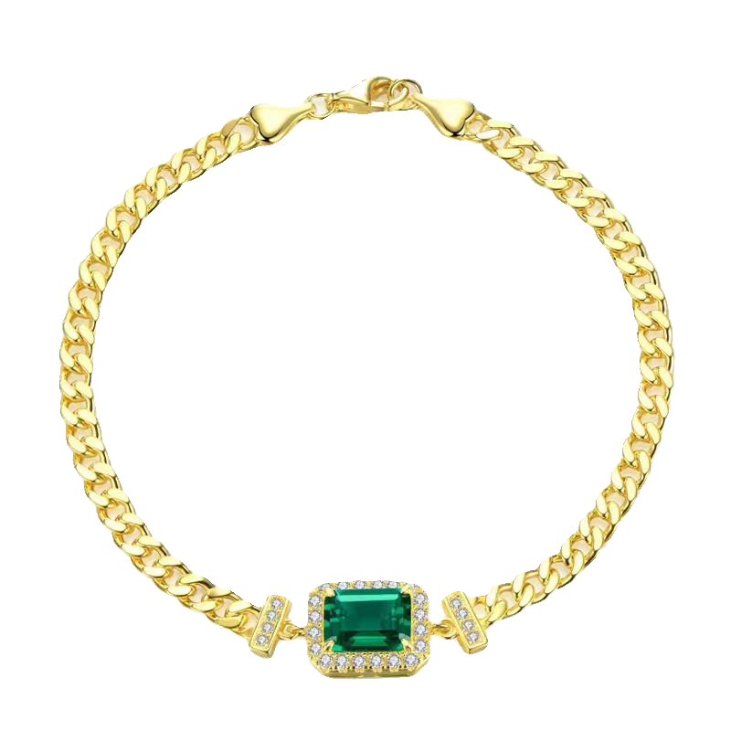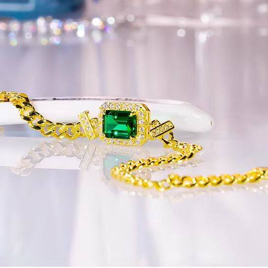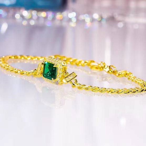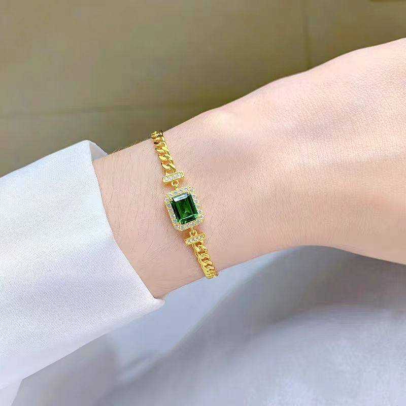AU750 黄金镶嵌D色莫桑石祖母绿复古手链气质轻奢设计感纯银时尚