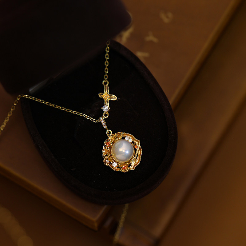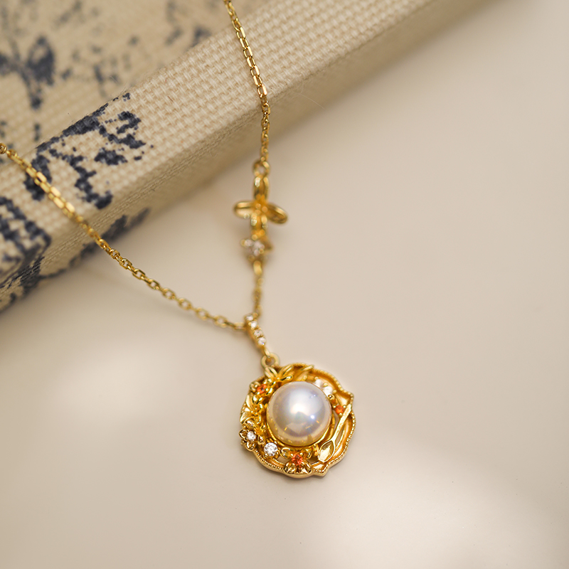 《桂花·汤圆》旁边还有个小勺子~原创设计复古天然珍珠纯银项链