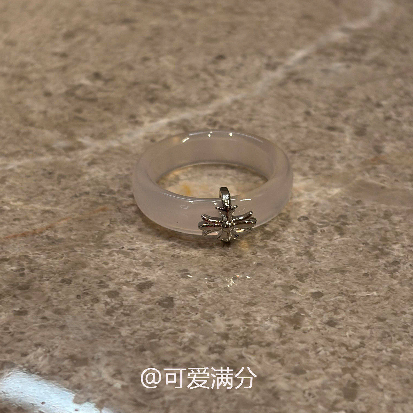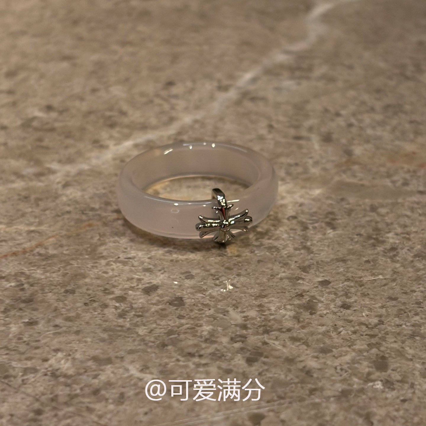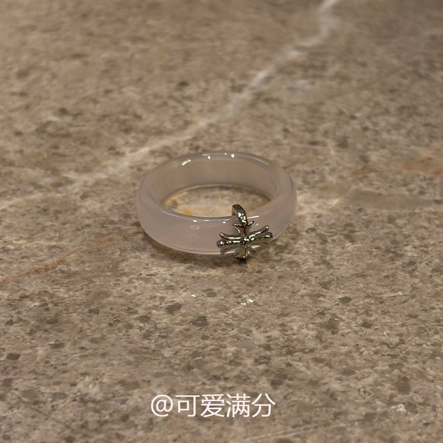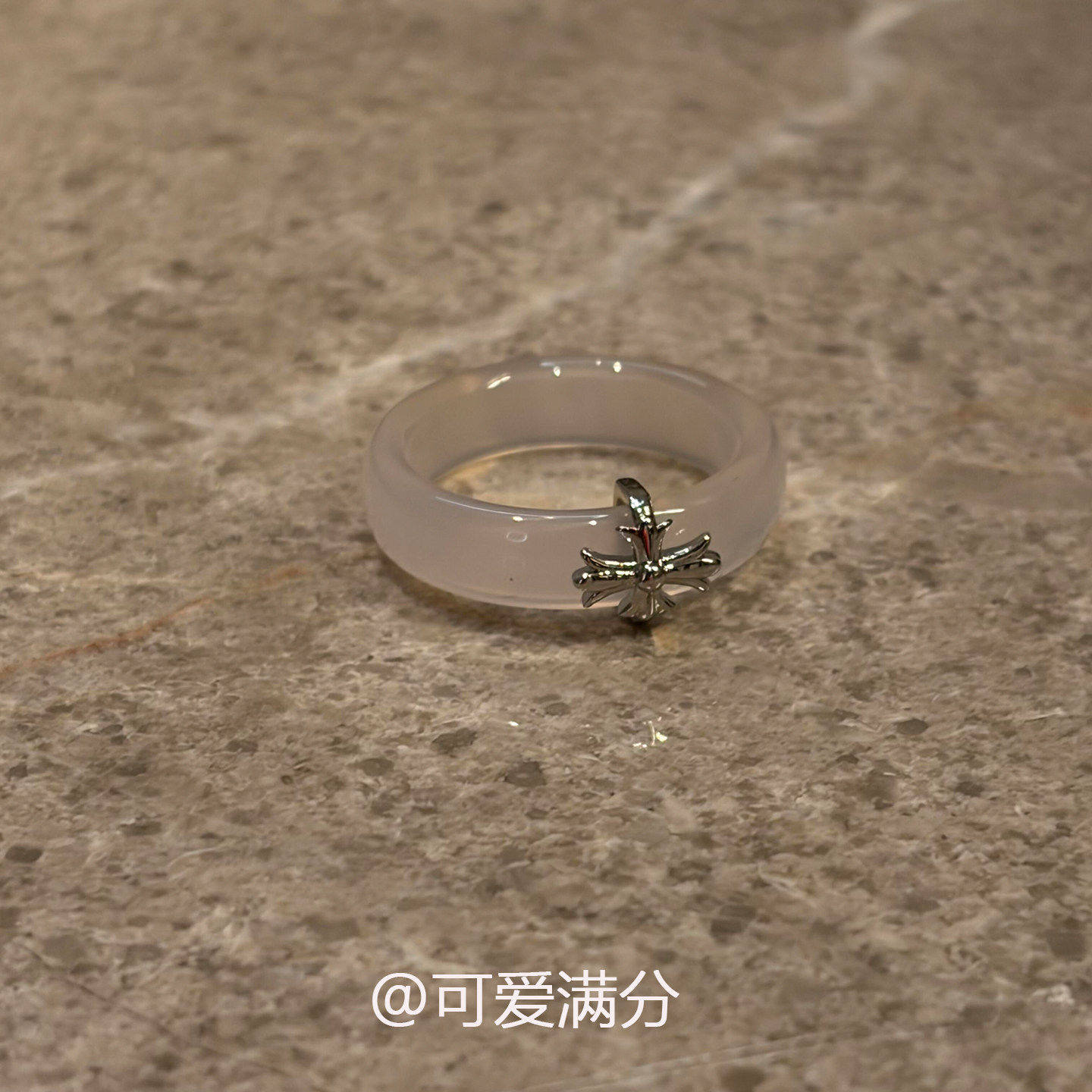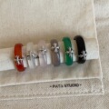 清冷感鸢尾花仿玉髓素圈戒指新中式温婉食指戒气质大气十字架指环