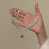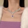 【人间梦露】满钻紫色水滴项链耳钉轻奢气质高级晚礼服锁骨链配饰