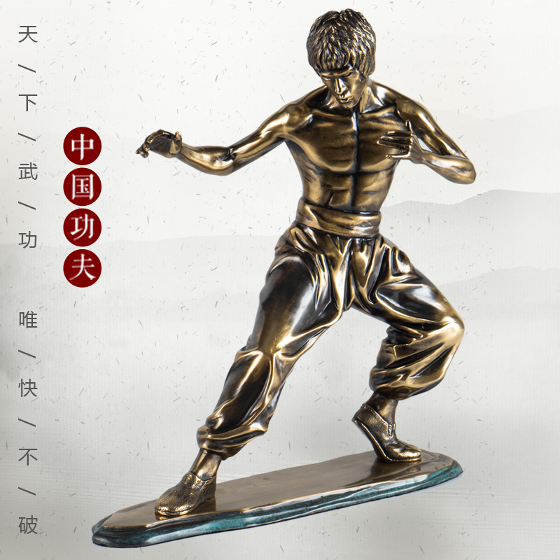 新中式李小龙人物雕o塑模型摆件创意客厅武馆办公室纯铜装饰品摆