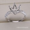 DIY配件 S925纯银遮瑕皇冠开口可调节大小版珍珠戒指空托手工制作