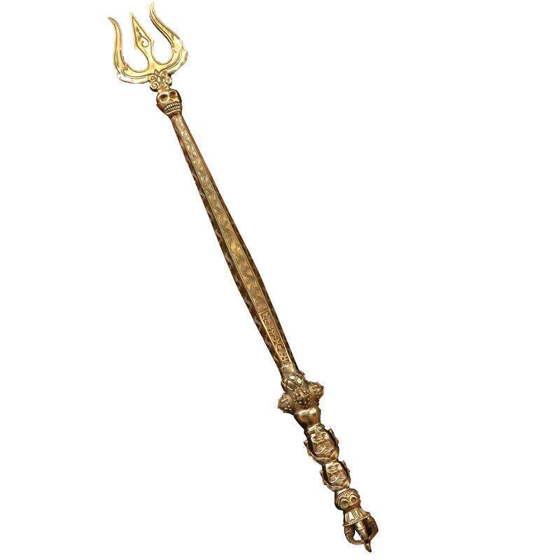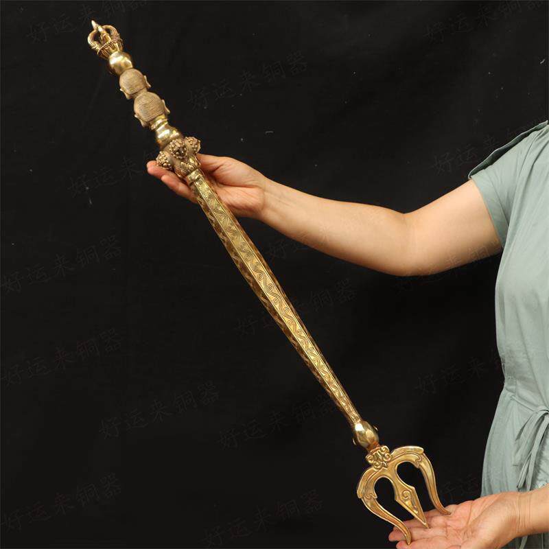 纯黄铜三叉金刚杵法器摆件家用佛堂道士佛头金刚降魔杵工艺礼品摆