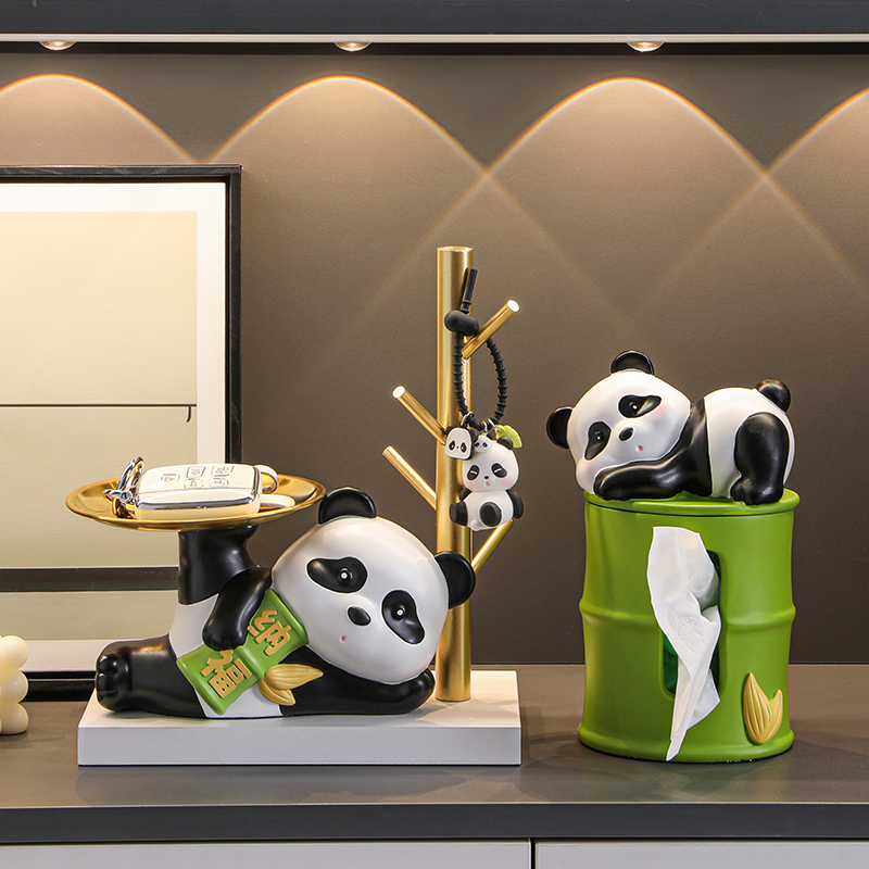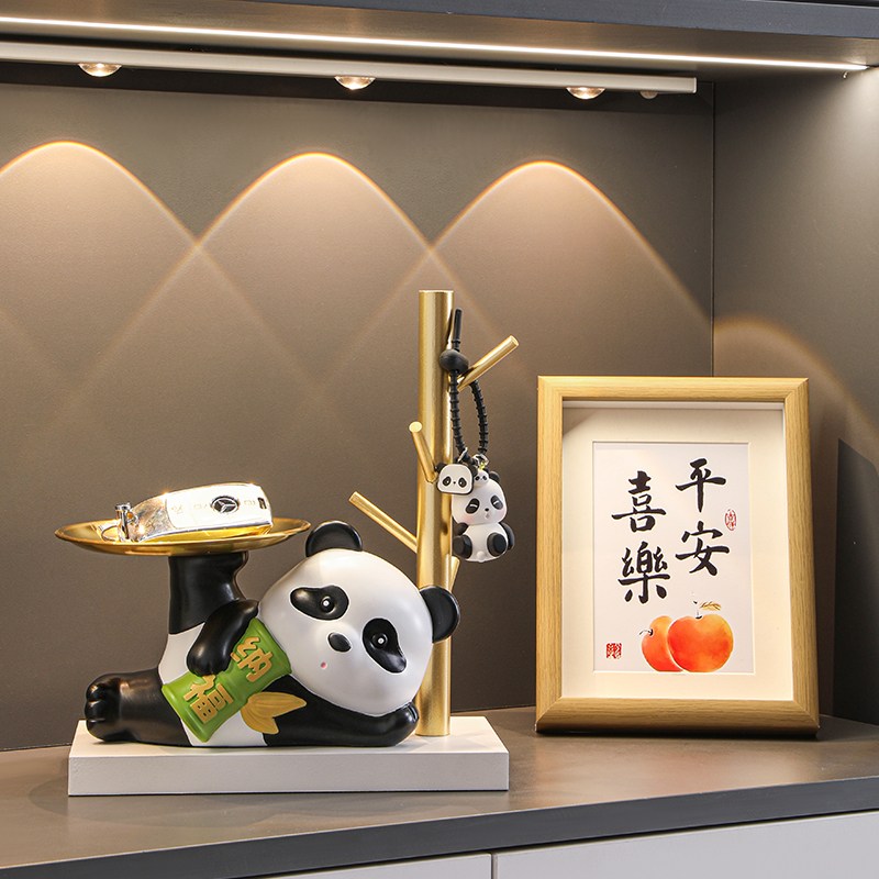 熊猫入户玄关钥匙收纳摆件家居装饰品进门口鞋柜客厅乔迁新居礼品