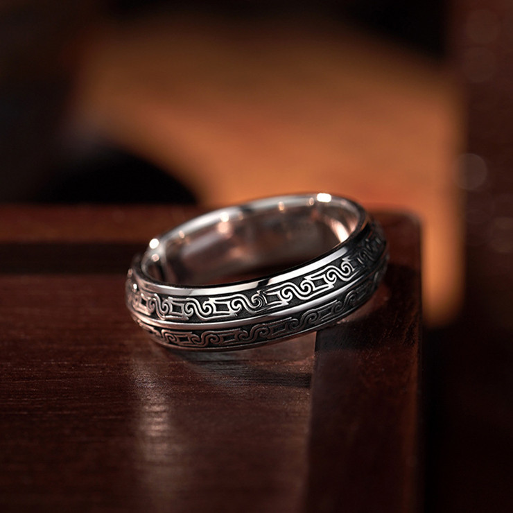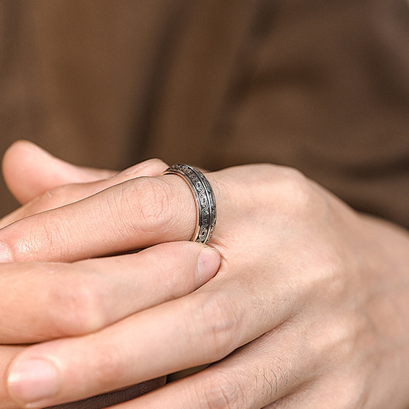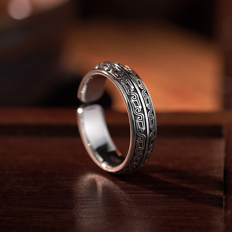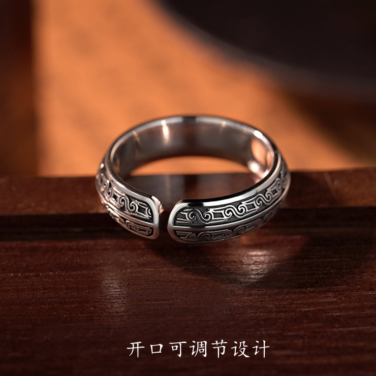 吉祥神兽纹S925纯银戒指男款个性复古做旧食指指环小众开口可调节