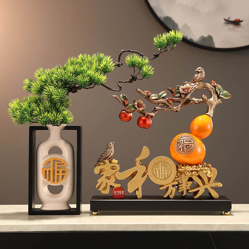 家和万事兴摆件迎客松客厅电视酒柜玄关轻奢高档装饰乔迁新居礼品