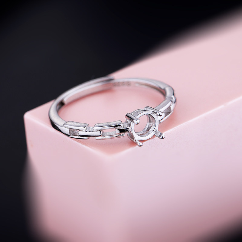 S925银戒指空托日韩时尚简约女戒托镶嵌蜜蜡翡翠开口戒托4.5*4.5