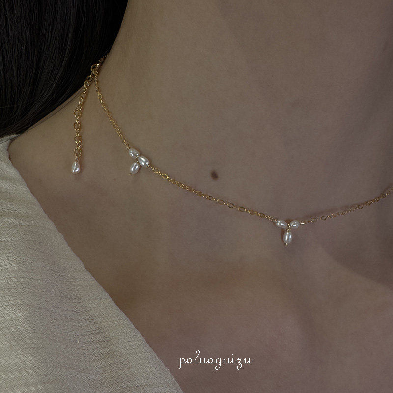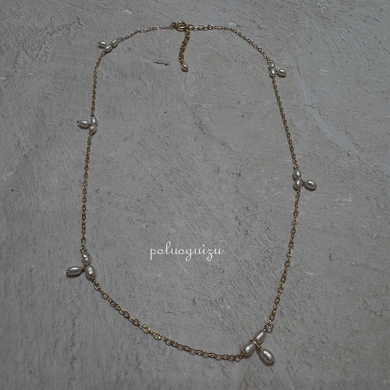白色茉莉原创小众手工美国14k注金天然强光米粒珍珠项链锁骨链