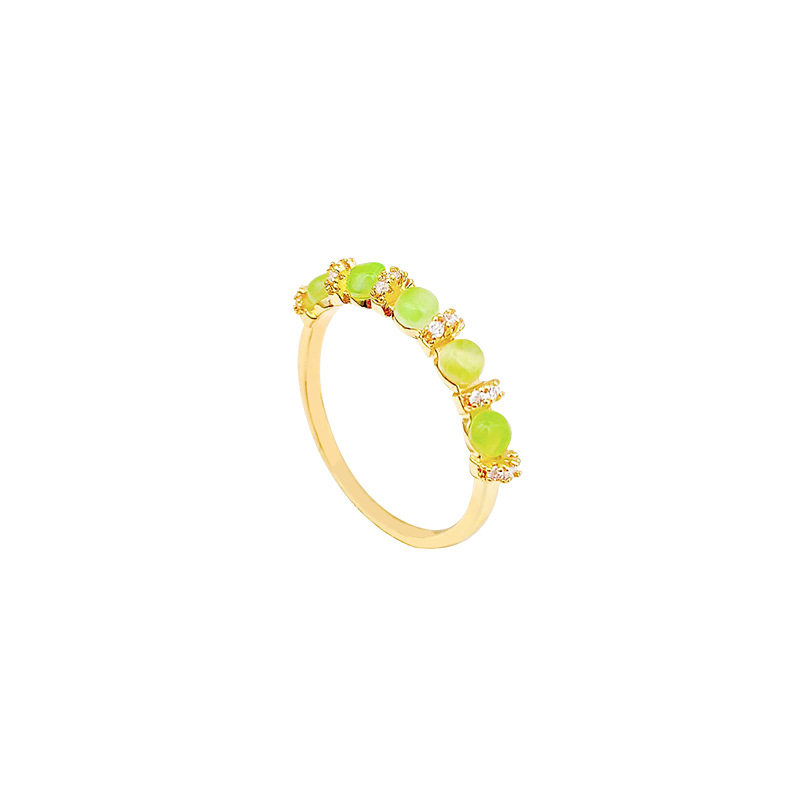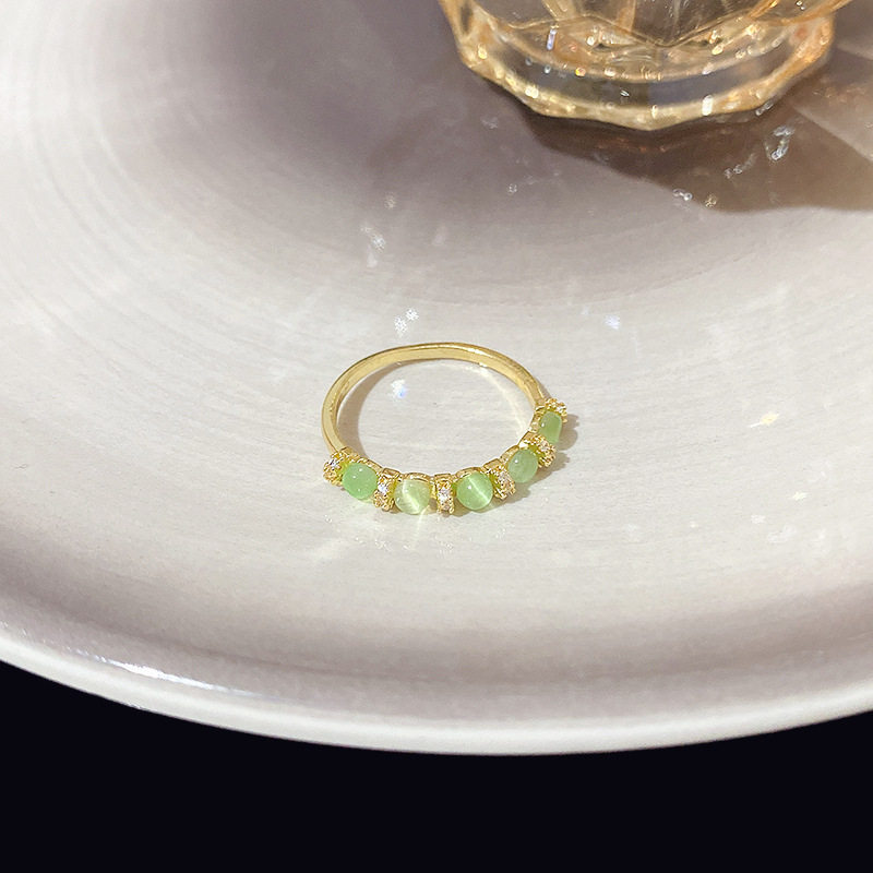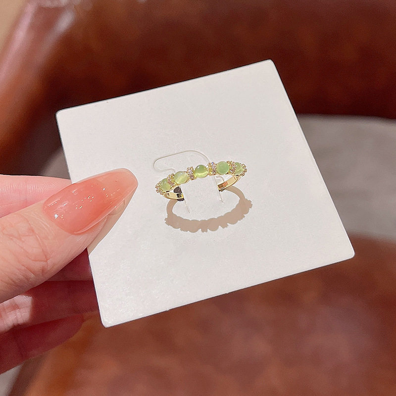 绿色猫眼石锆石戒指小众设计ins风高级百搭指环显白戒指