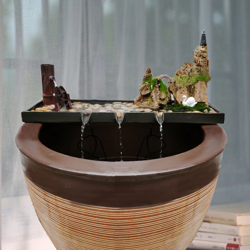 陶瓷流水鱼缸装饰摆件水循环流水器过滤摆件石槽增氧器配件造景