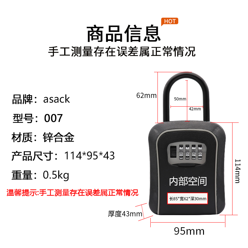 装修工地密码钥匙盒免安装民宿y门口锁匙密码盒户外防盗密码锁盒