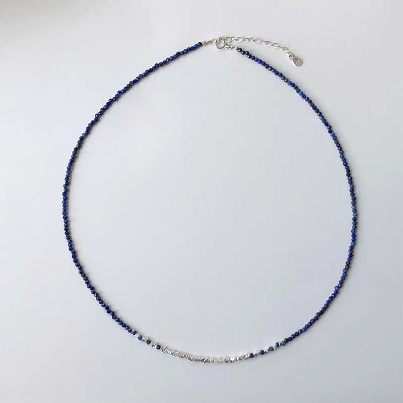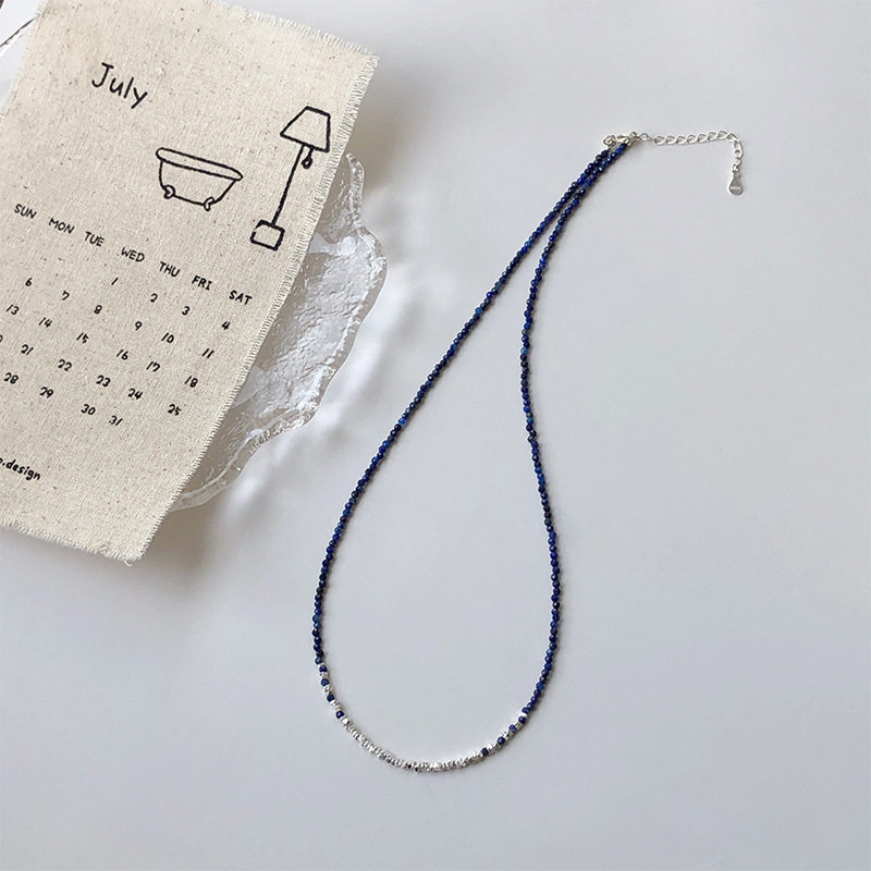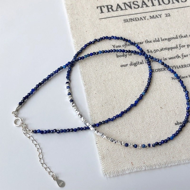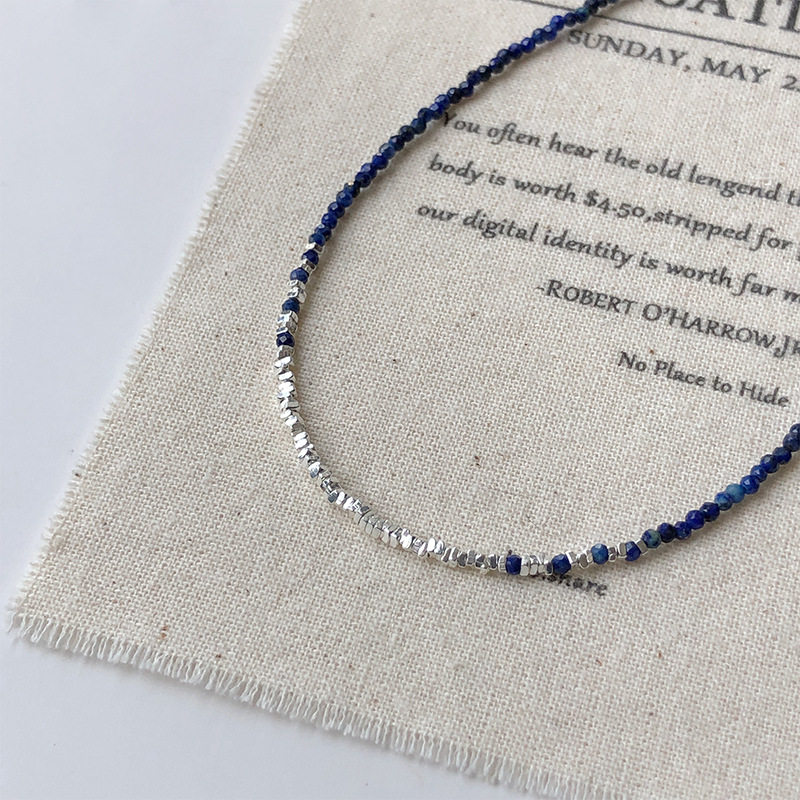 S925银碎银子青金石项链渐变蓝色串珠锁骨链小众精致百搭通勤时尚
