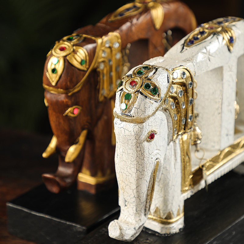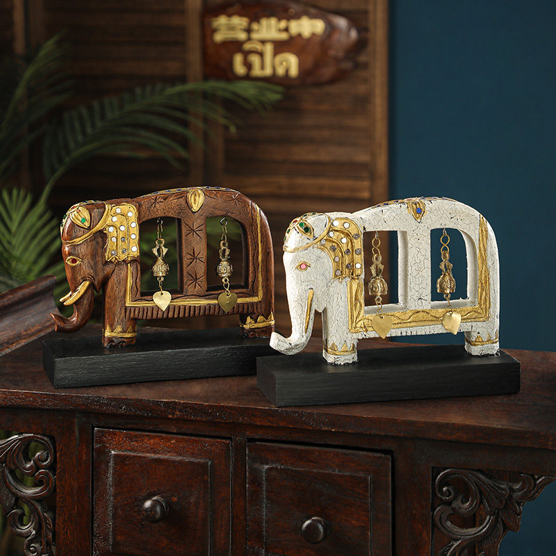 异丽东南亚风格家居泰国大象摆件实木木雕工艺品泰式风情创意装饰
