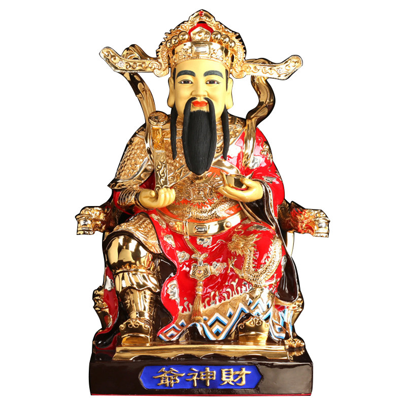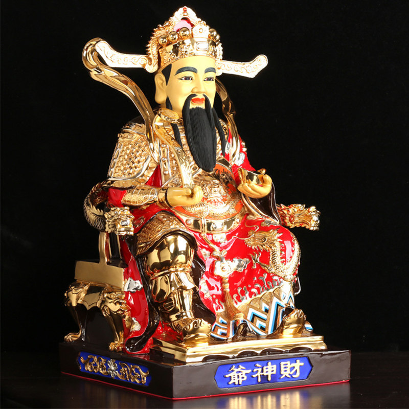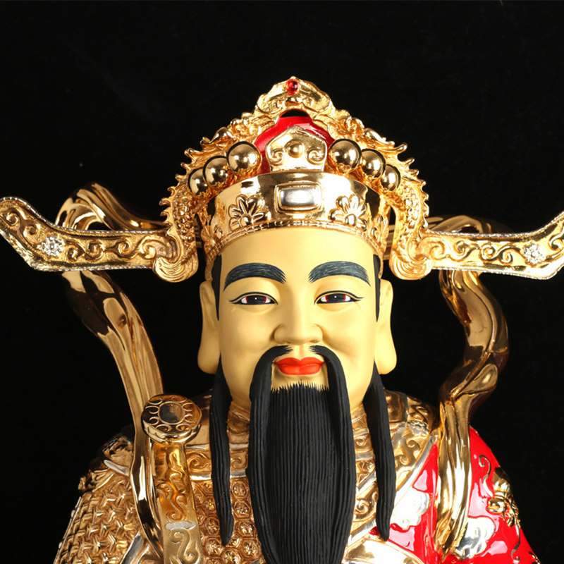 台湾盛凡黄铜招财敬奉家用招财神爷摆件店铺招财红色文财神爷