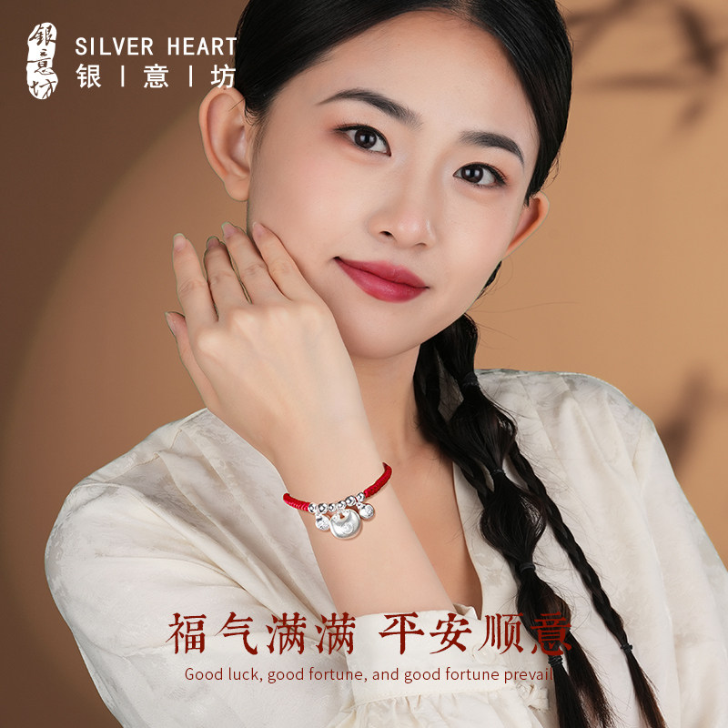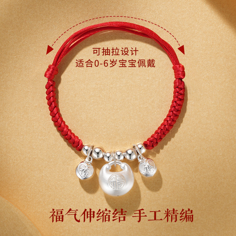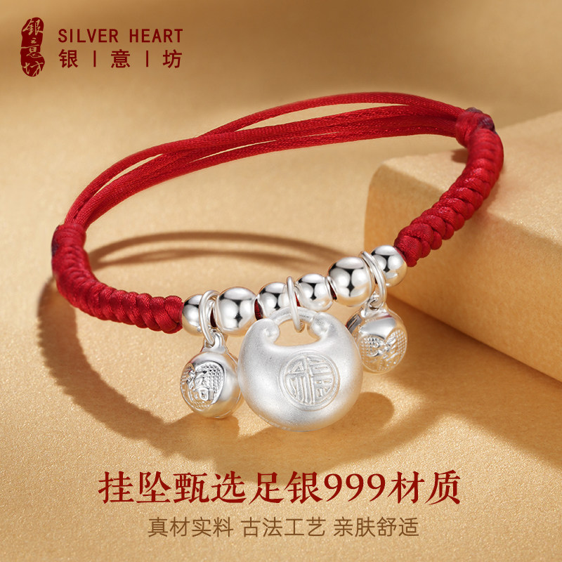 宝宝银手链婴儿手绳手工编织儿童红绳手链男孩女童足银胖福小银坨