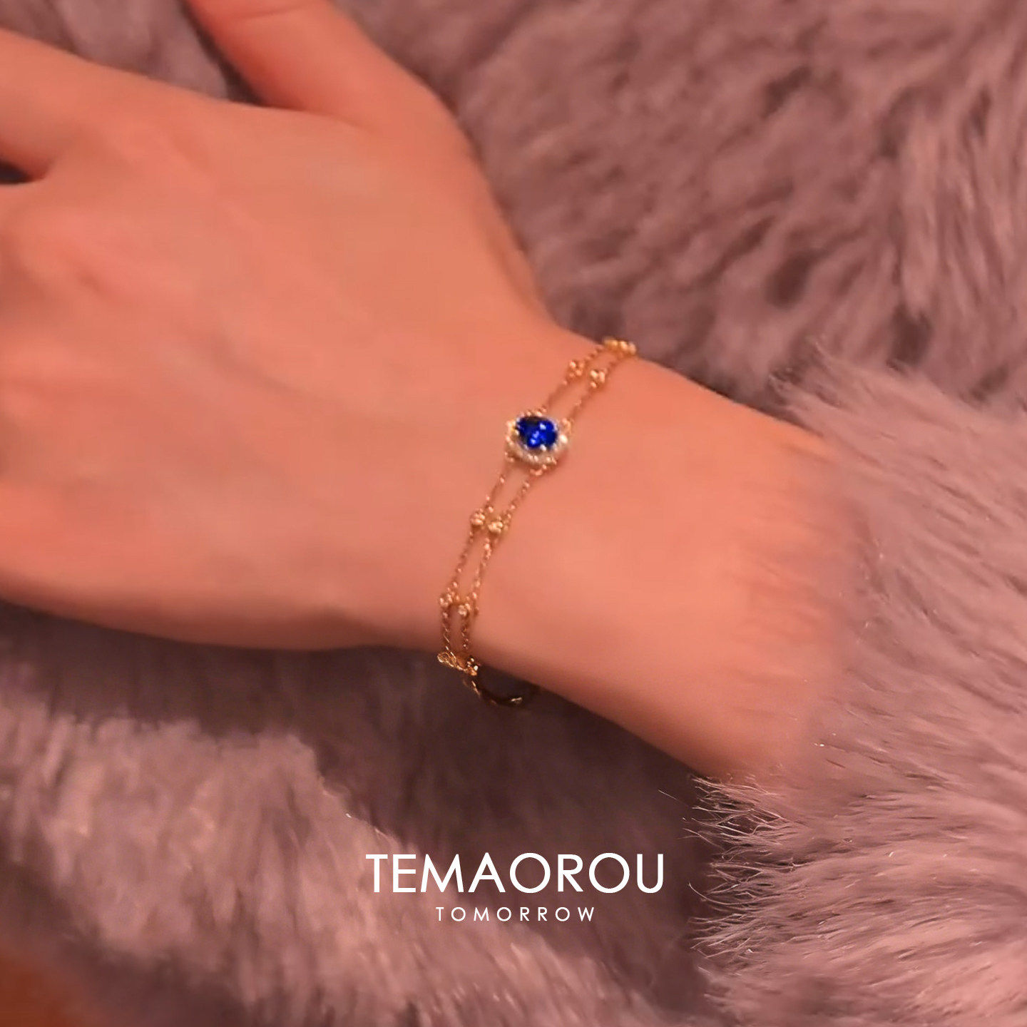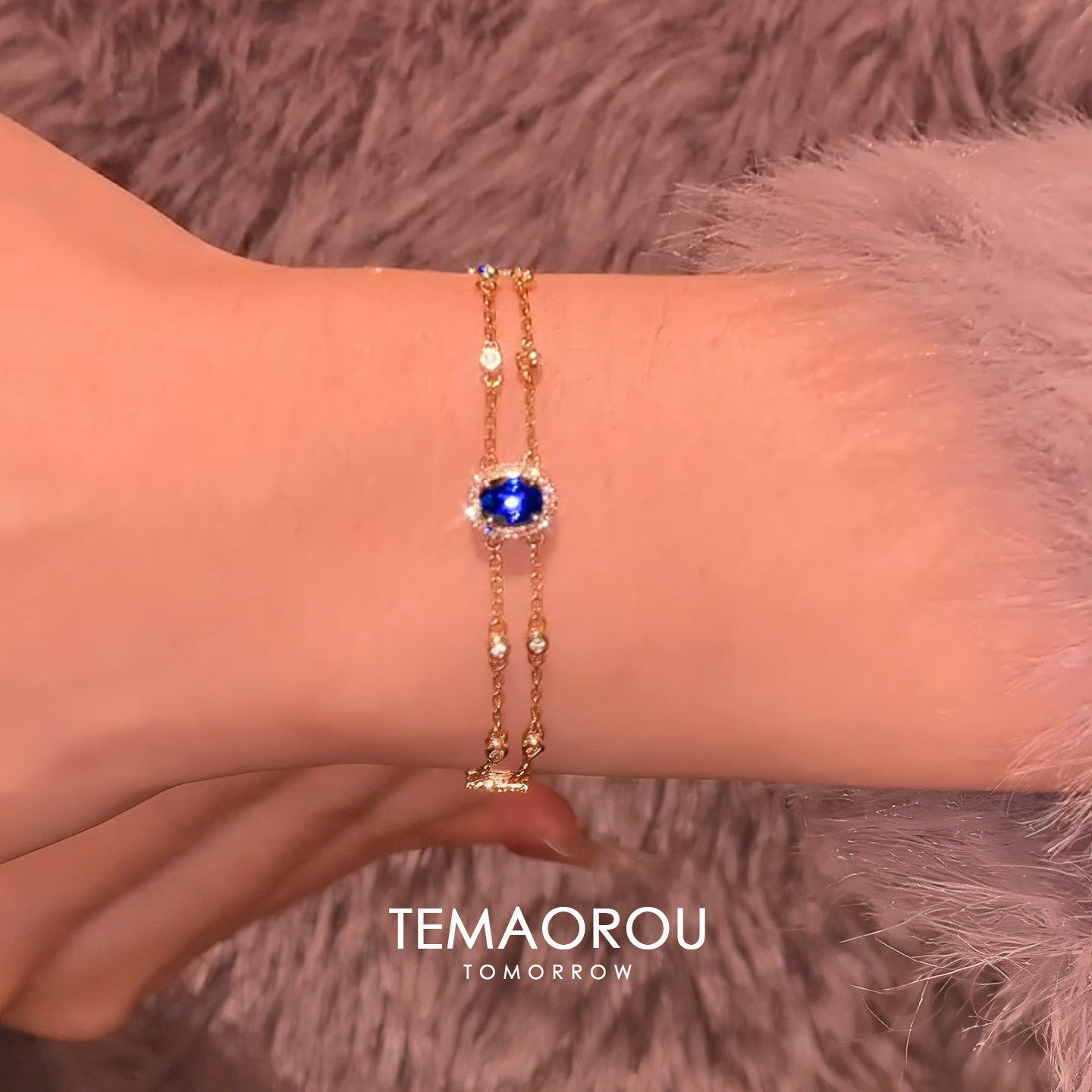 双层一体重工椭圆蓝色仿宝石手链女2026新款小众设计精致百搭手饰