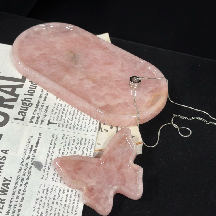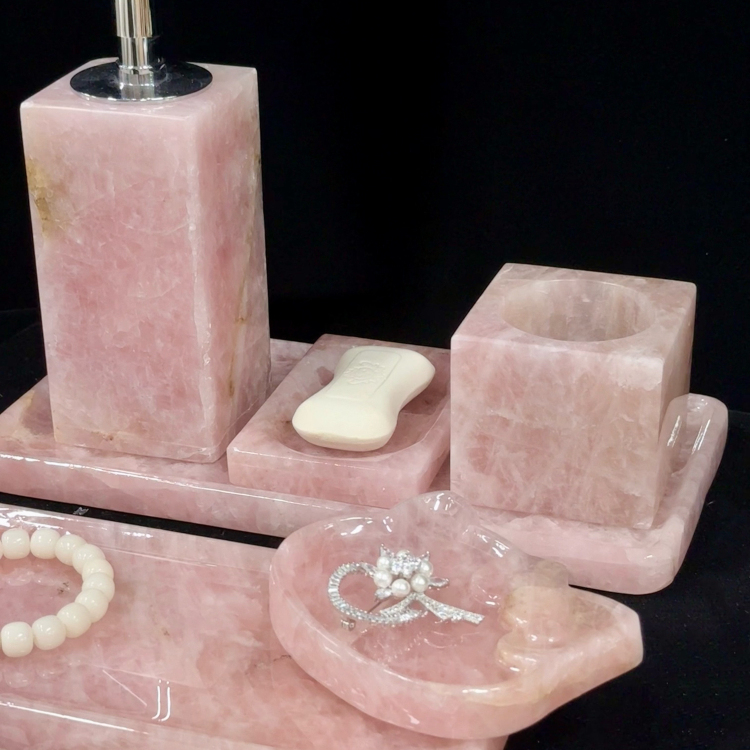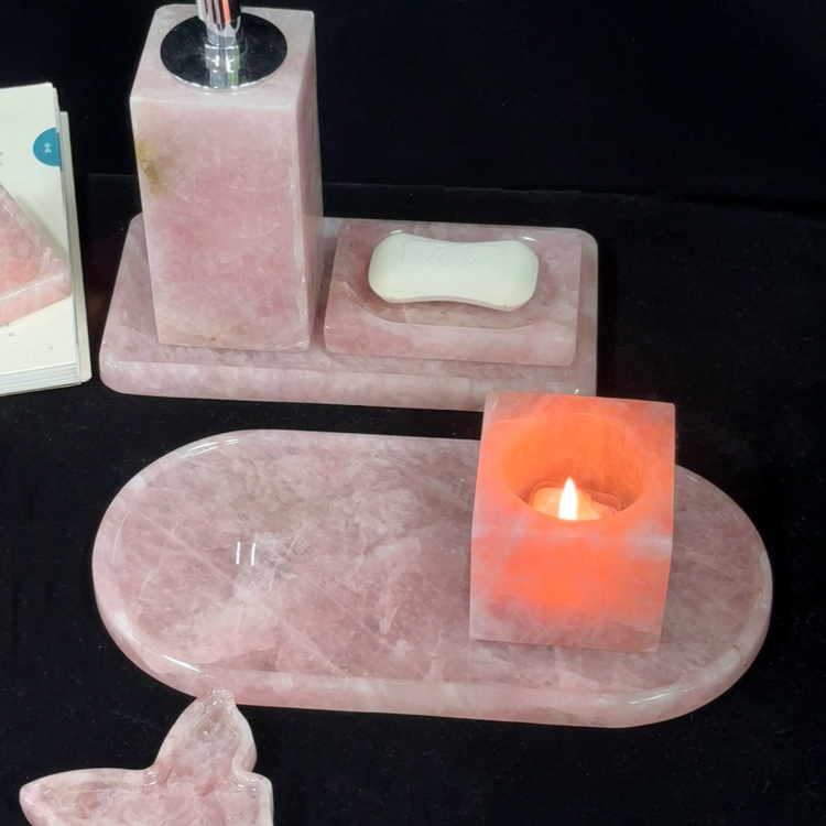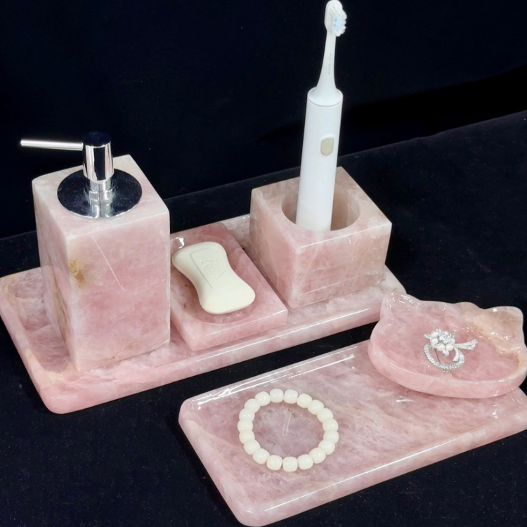 粉水晶天然大理石托盘 北欧梳妆台首饰化妆品收纳盘 家居桌面装饰