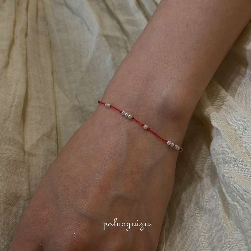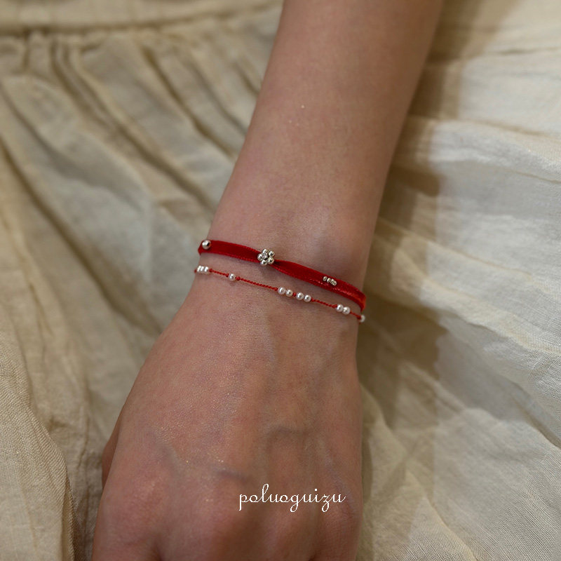 致新年安心治愈手工编制红绳天然珍珠进口丝绒手链手绳显白叠戴