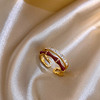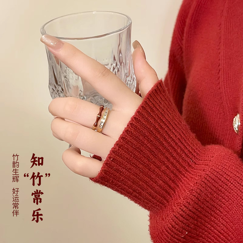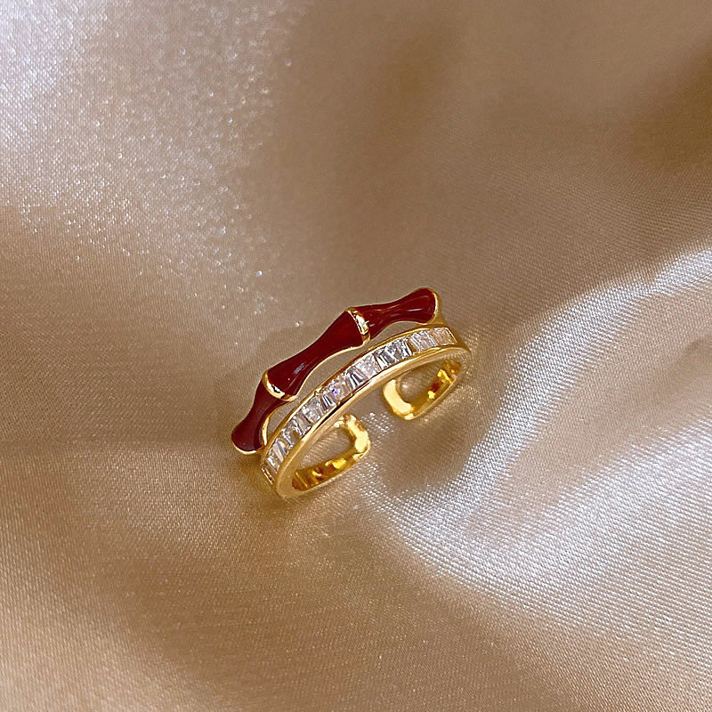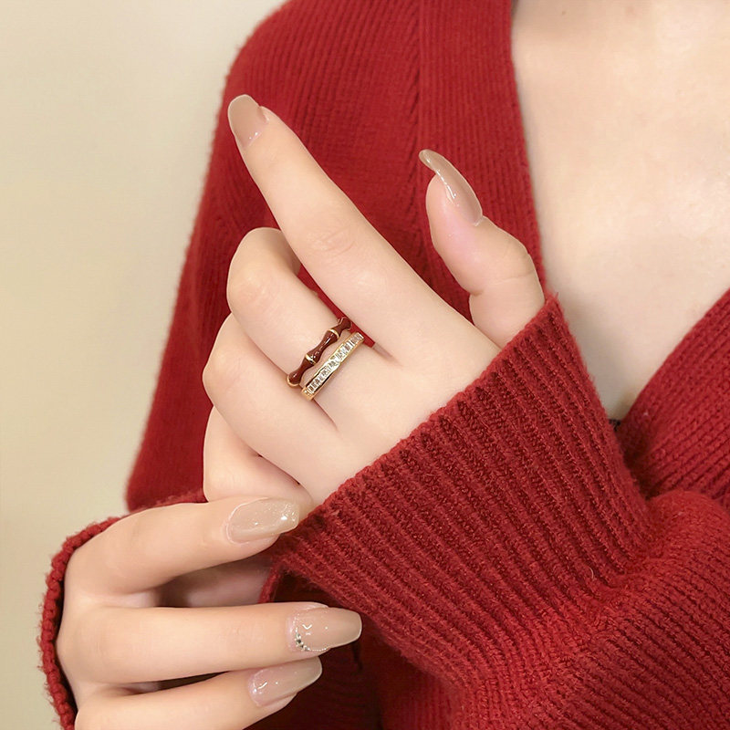 小众双层锆石红色竹节开口戒指女可调节偏财尾戒复古夸张中古指环