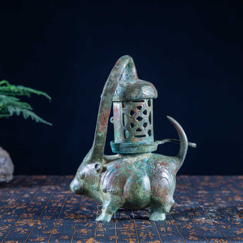 汉代宫廷牛灯古油灯青铜器仿古工艺品动物灯客厅复古怀旧礼品摆件