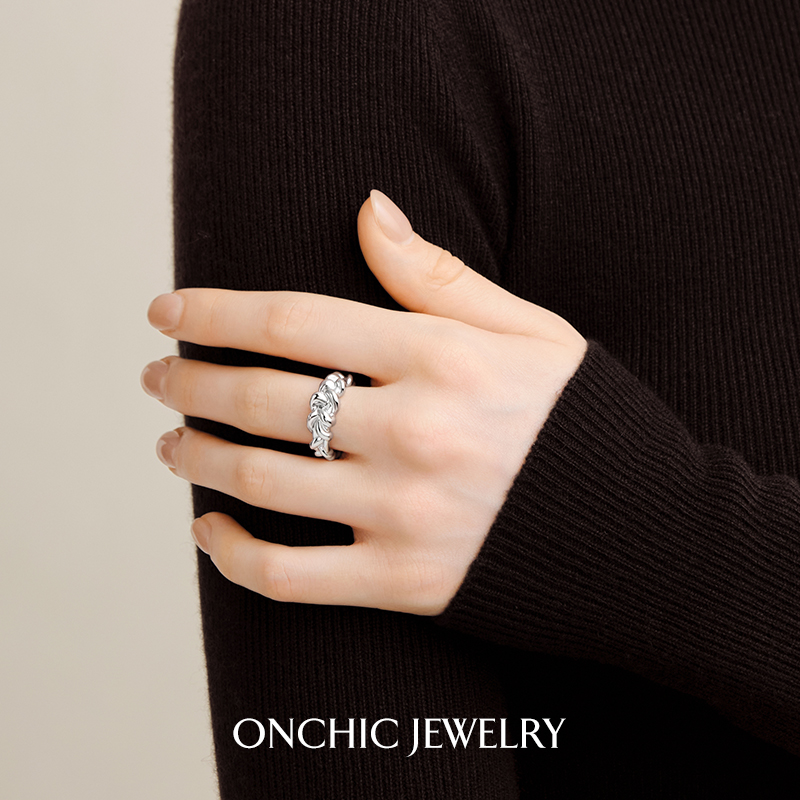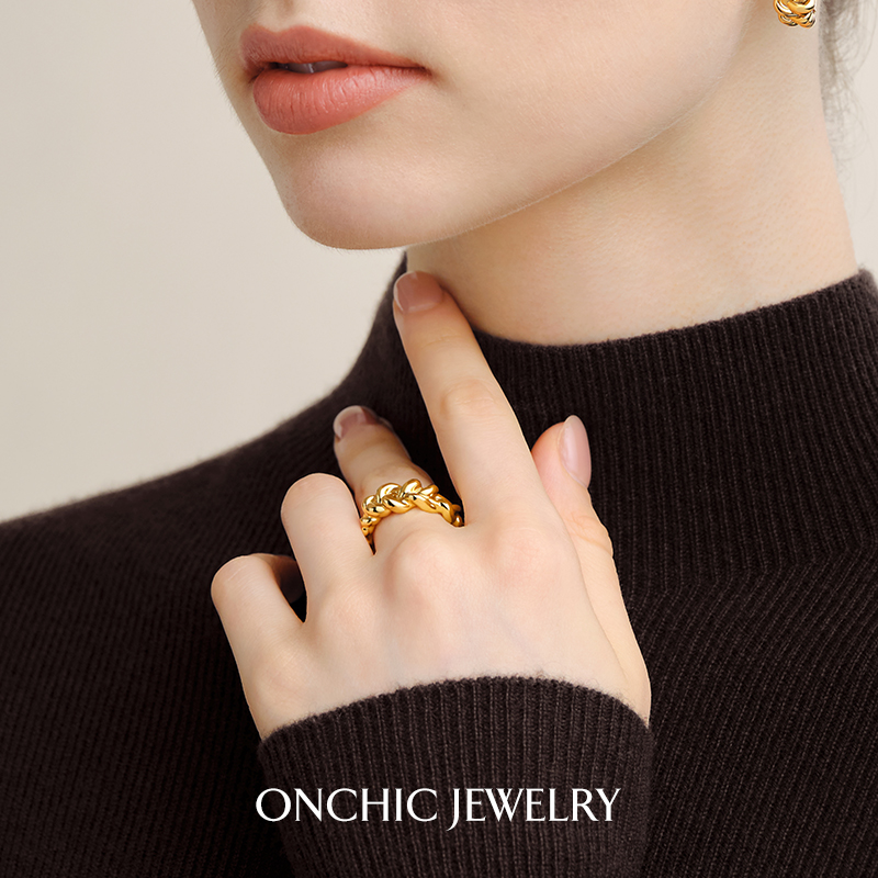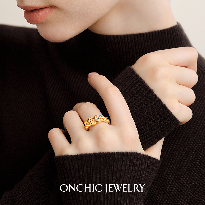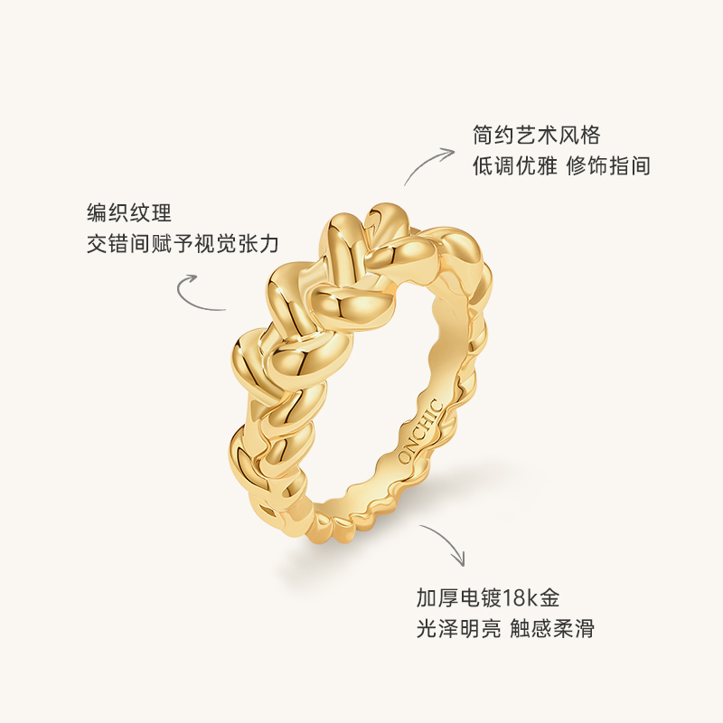 onchic小心诗明星同款编织麻花戒指女色素圈食指戒指环轻奢高级